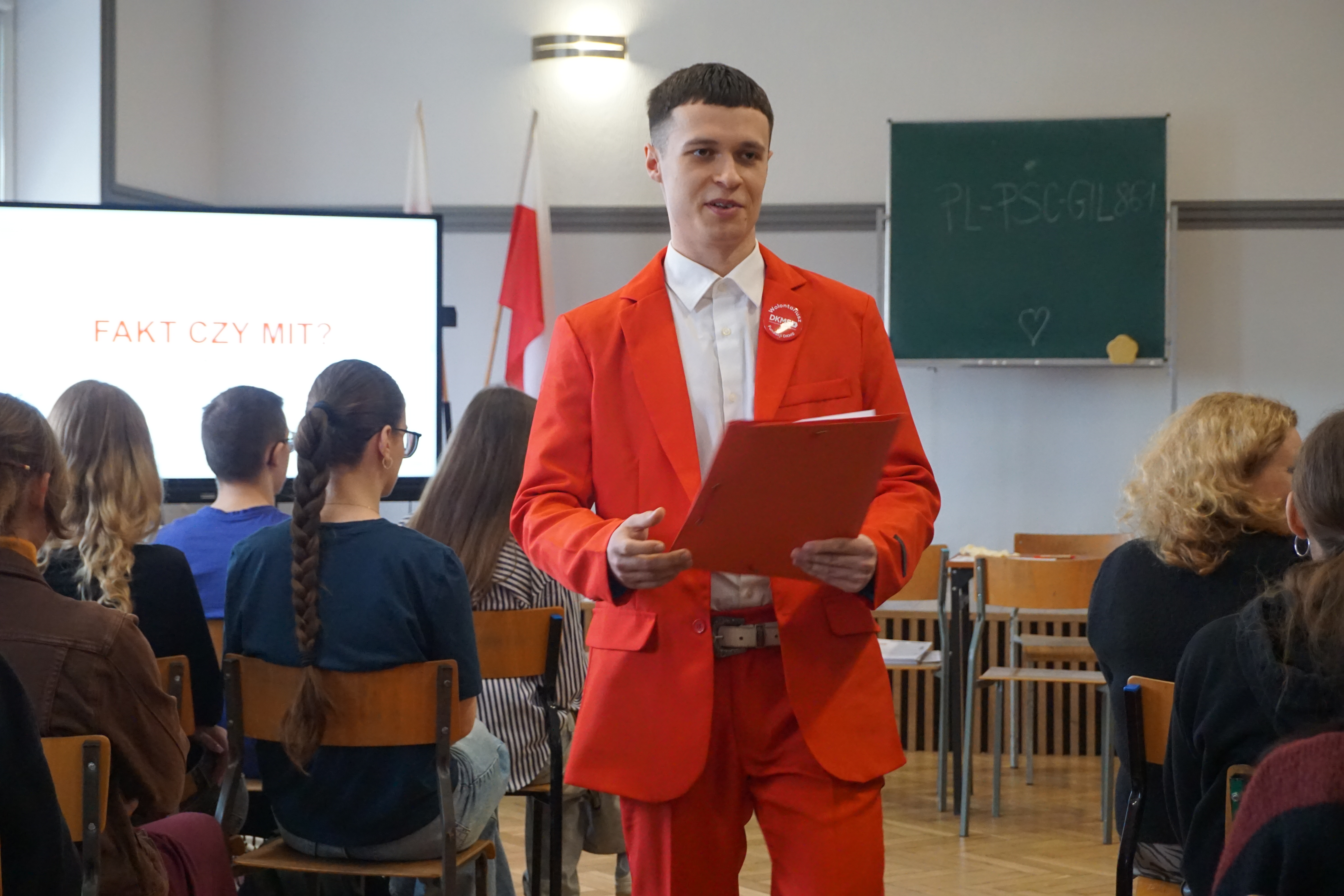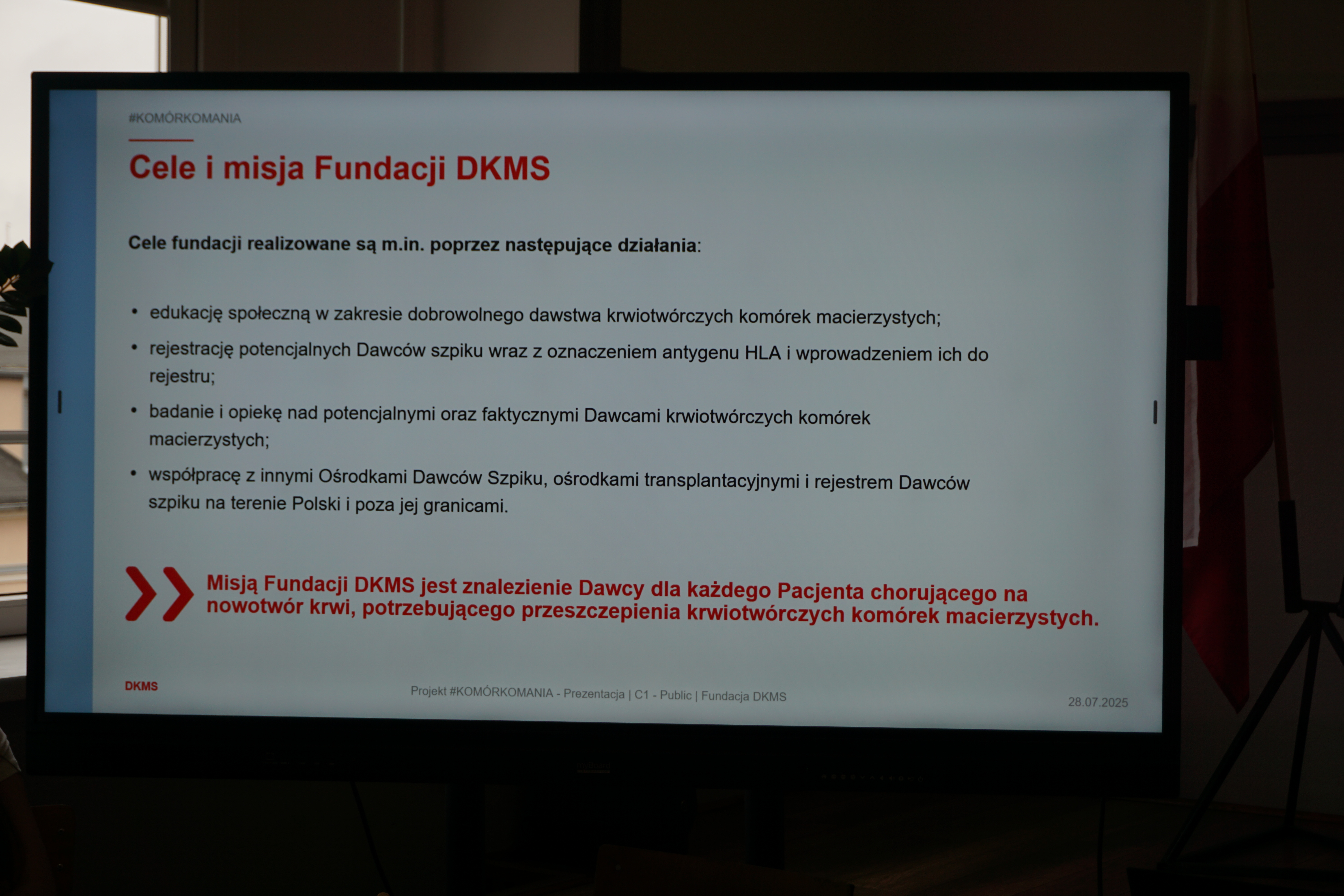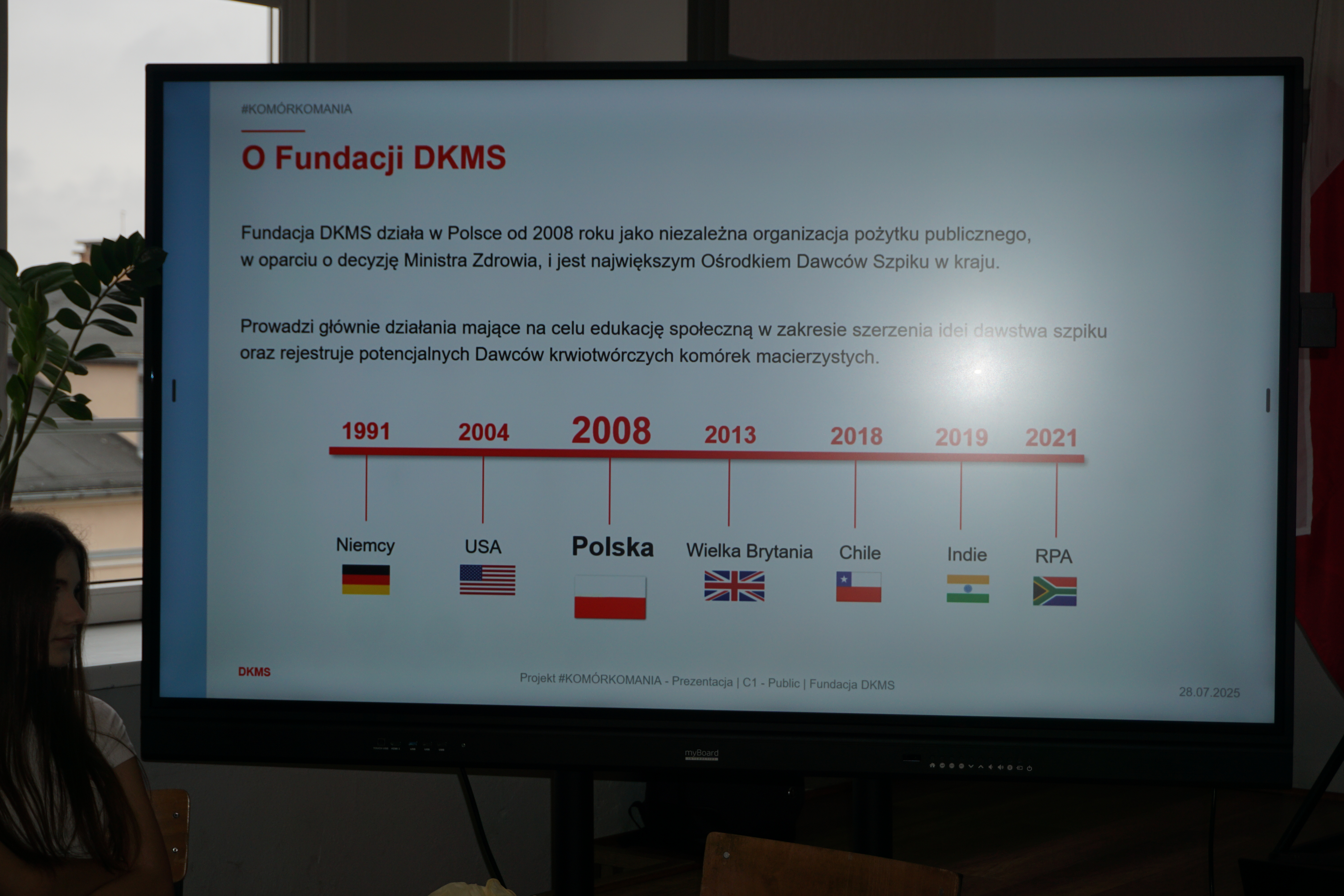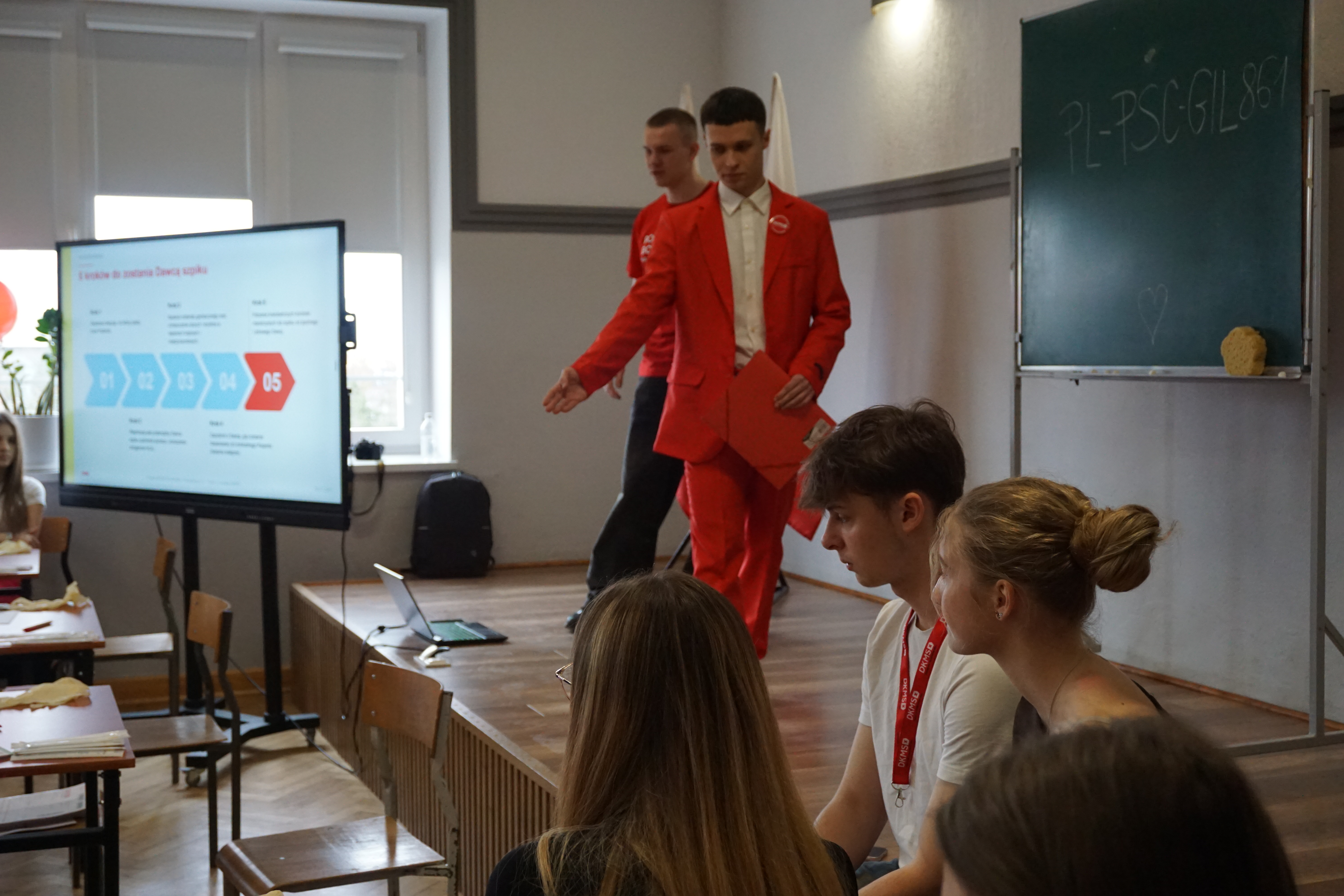 Czwartek (17 marca 26 rok)był dniem wyjątkowym. Tego dnia przybyli do nas goście z fundacji DKMS czyli fundacji zajmującej się poszukiwanie dawców szpiku.