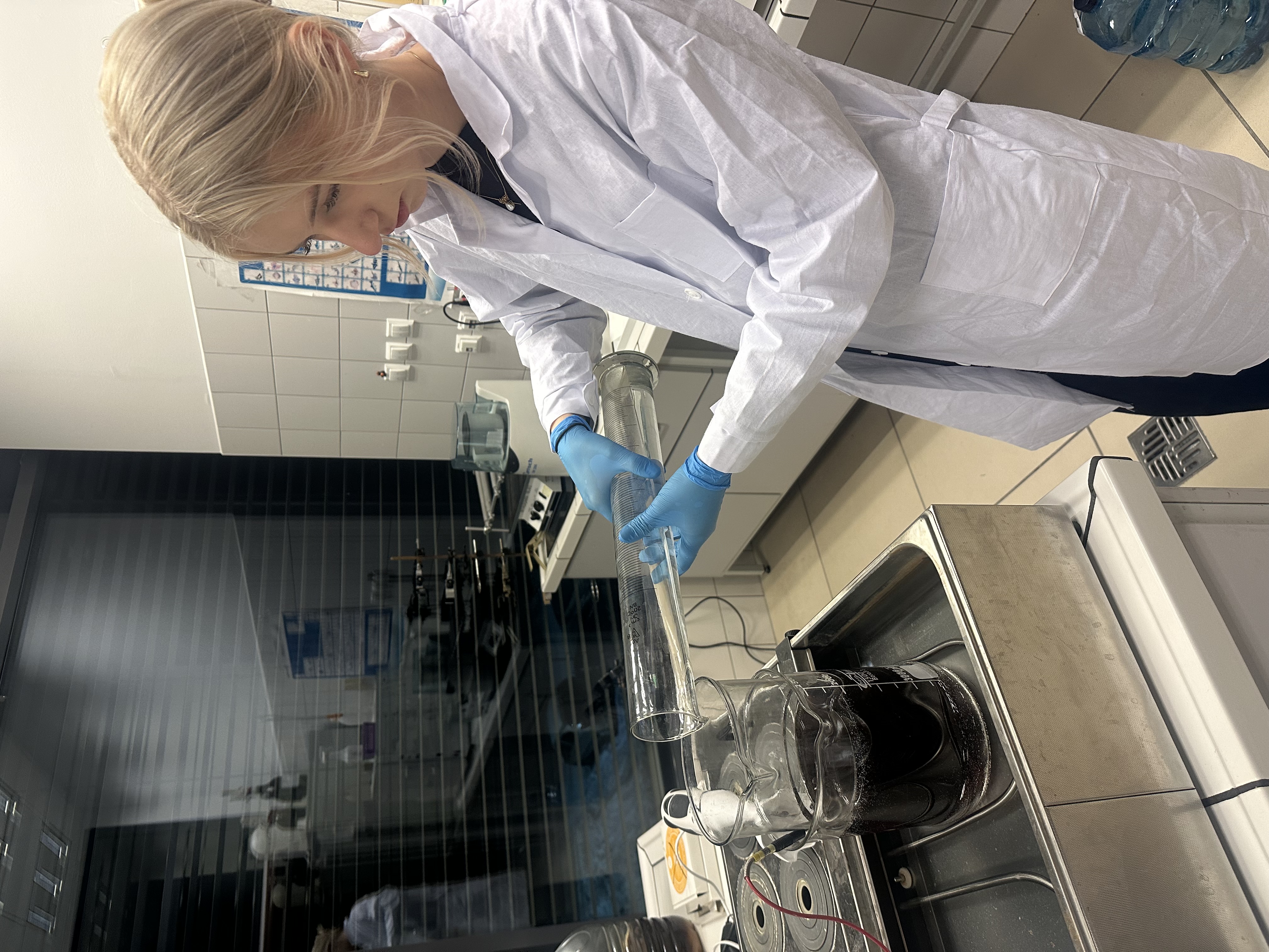 Projekt koncentruje się na procesie transestryfikacji – reakcji chemicznej, w której składniki zużytego oleju (triacyloglicerole) reagują z alkoholem, prowadząc do powstania biodiesla (estry kwasów tłuszczowych) oraz gliceryny. W ramach badań uczennice zajmują się przygotowaniem i oczyszczaniem surowca, prowadzeniem reakcji chemicznych oraz analizą otrzymanych produktów. Praca w profesjonalnym środowisku laboratoryjnym pozwala im zdobywać praktyczne doświadczenie, rozwijać umiejętności analityczne oraz poznawać metody wykorzystywane w nowoczesnych badaniach chemicznych.
