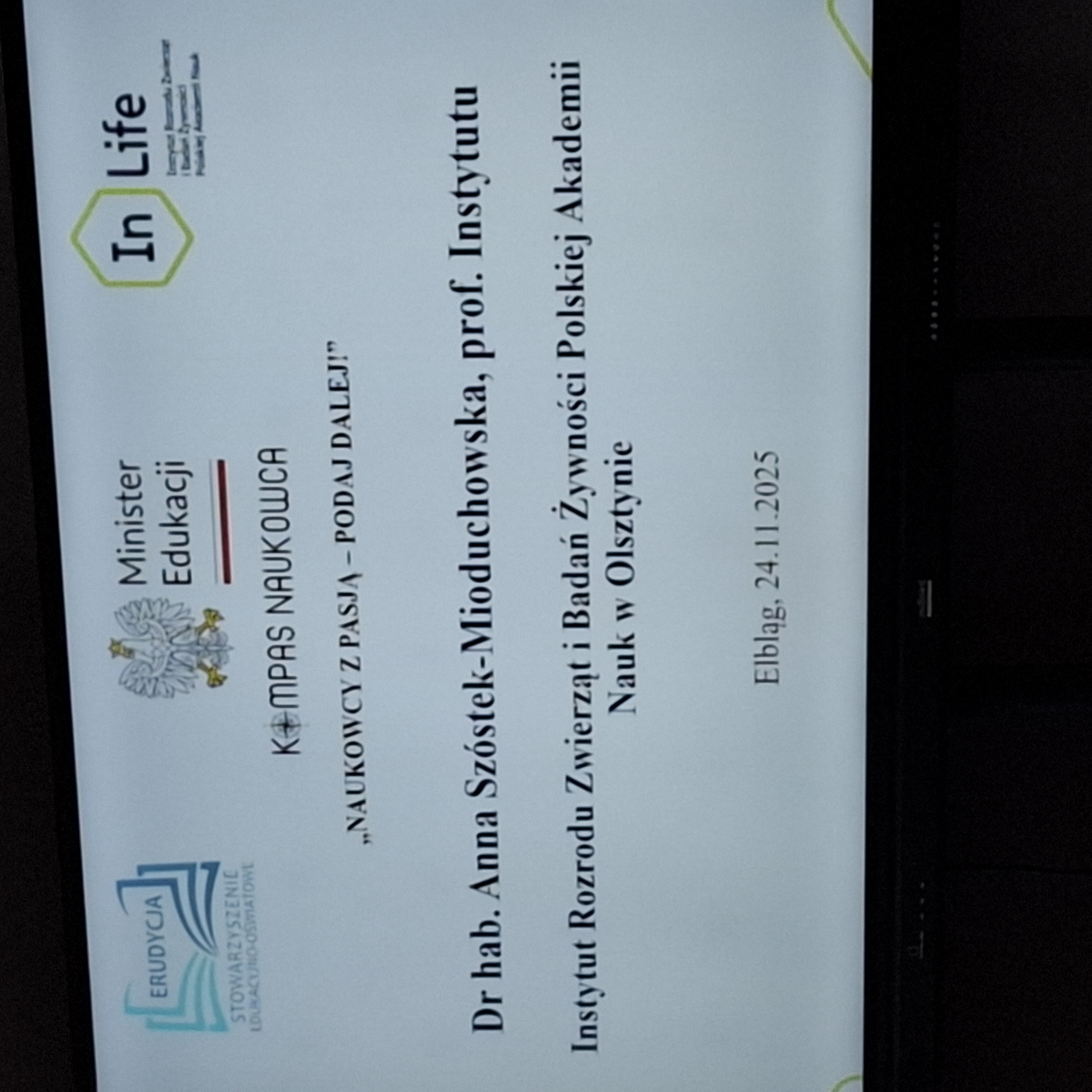 Dziś (24.11.2025r.) nasza szkołę odwiedziła Pani dr hab. Anna Szóstek-Mioduchowska, profesor Instytutu Rozrodu Zwierząt i Badań Żywności PAN w Olsztynie.