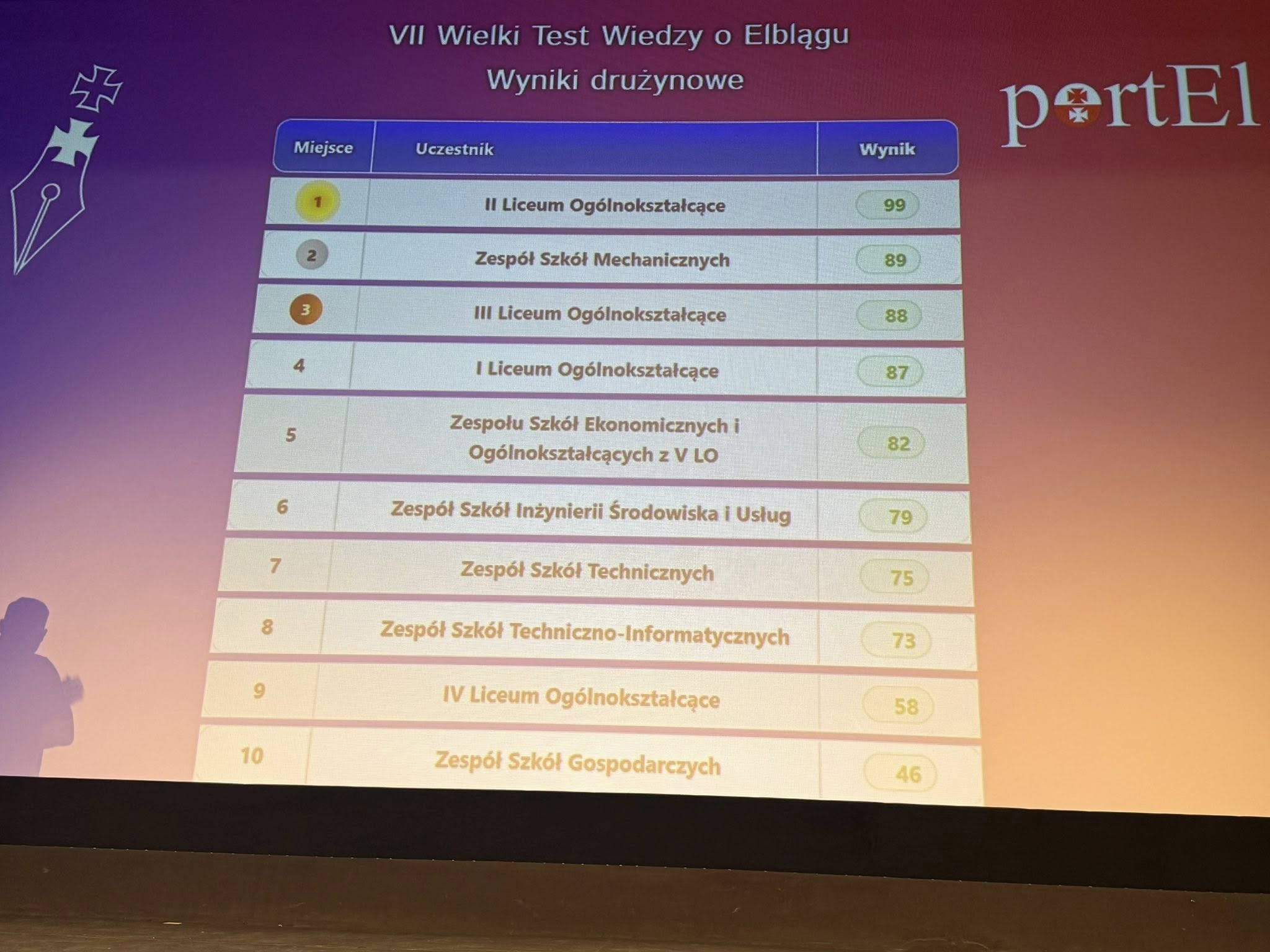 Uczniowie klasy 3 a: Igor Dziemidowicz, Kacper Pankau i Paweł Rynkowski zwyciężyli w rywalizacji drużynowej elbląskich szkół w VII Wielkim Teście Wiedzy o Elblągu. W rywalizacji brało udział 10 drużyn. W teście złożonym z 60 pytań trzeba było wykazać się wiedzą na temat historii Elbląga oraz aktualnych wydarzeń w mieście.