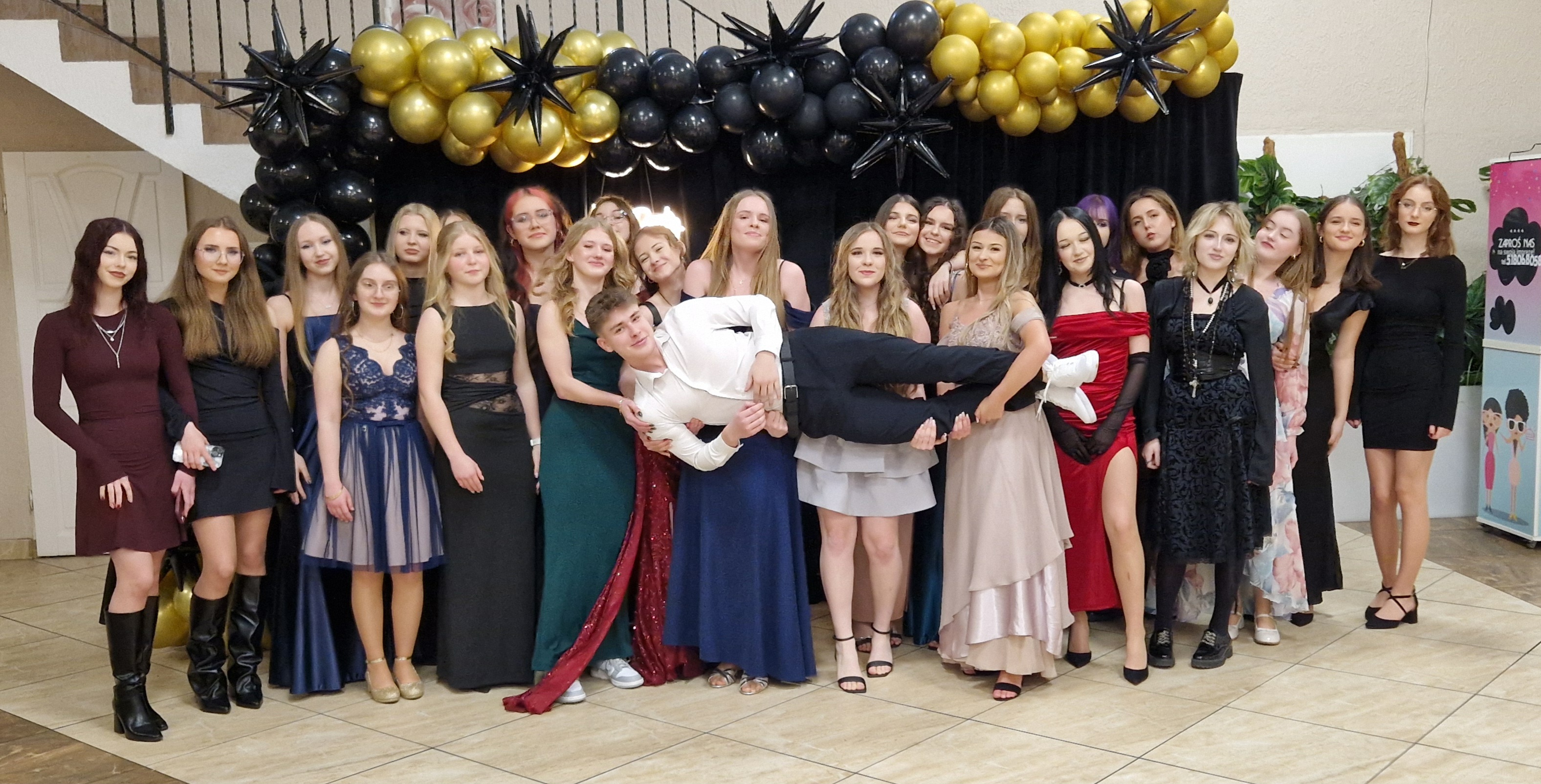 Uroczystość odbyła się w eleganckiej oprawie na sali weselnej Wiktoria, w atmosferze radości, wzruszeń i wspólnej zabawy. Parkiet przez cały wieczór był pełen tańczącej młodzieży, a uśmiechy nie znikały z twarzy uczestników do końca spotkania. Rodzice z dumą obserwowali swoich podopiecznych, którzy pokazali dojrzałość, odpowiedzialność i wzajemny szacunek.