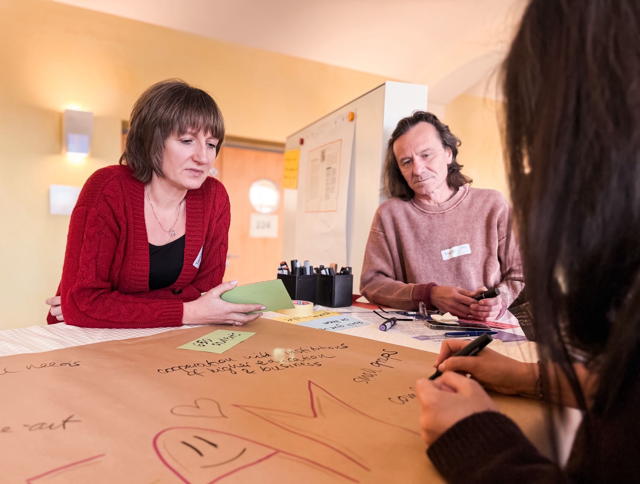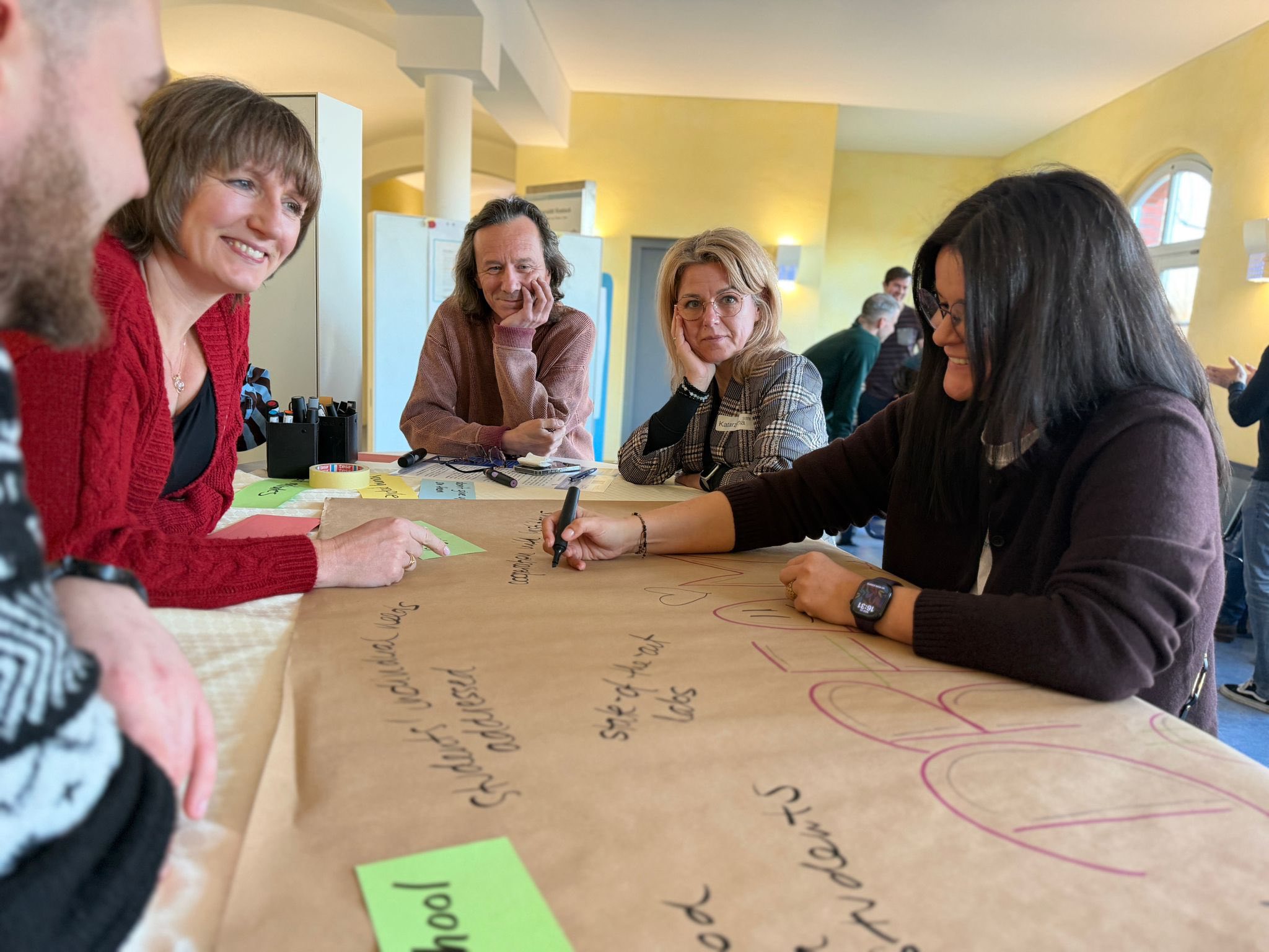 Dalsza część dnia to już intensywna praca: zanurzyliśmy się w ESD (Education for Sustainable Development = edukacja dla zrównoważonego rozwoju), stworzyliśmy wymarzoną szkołę przyszłości od zera, a wieczorem pracowaliśmy w podgrupach - było dużo konkretnych pomysłów i sporo śmiechu.