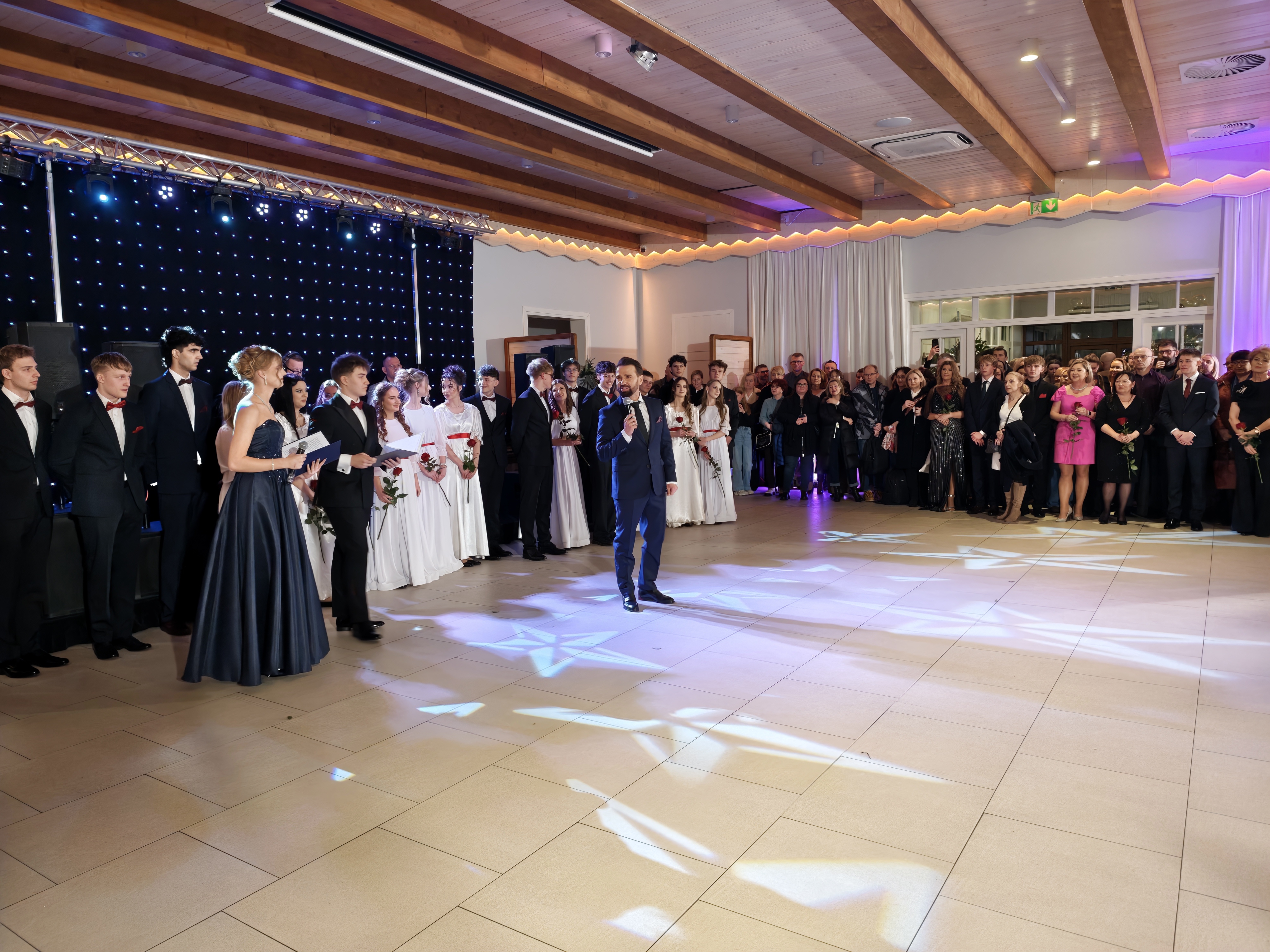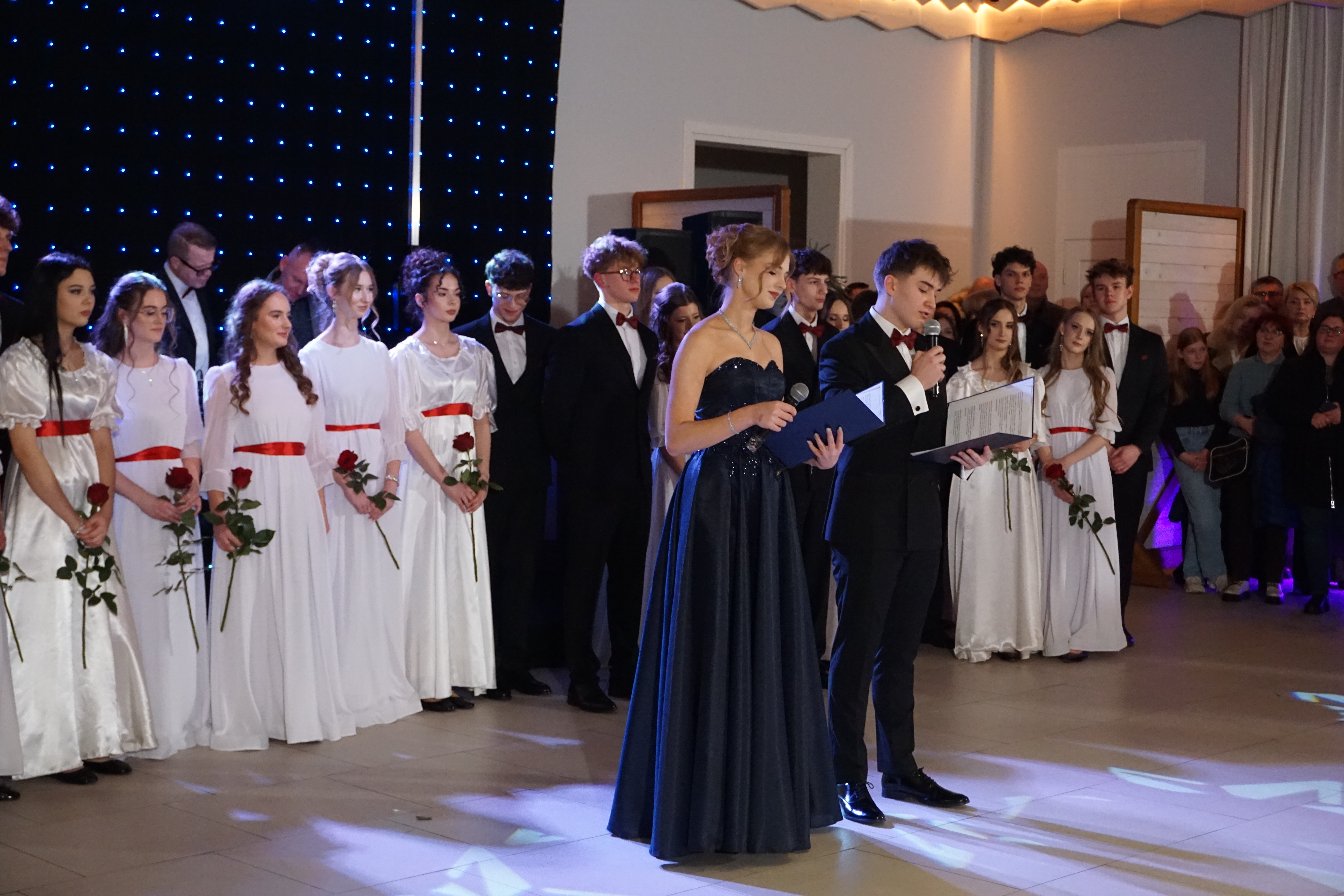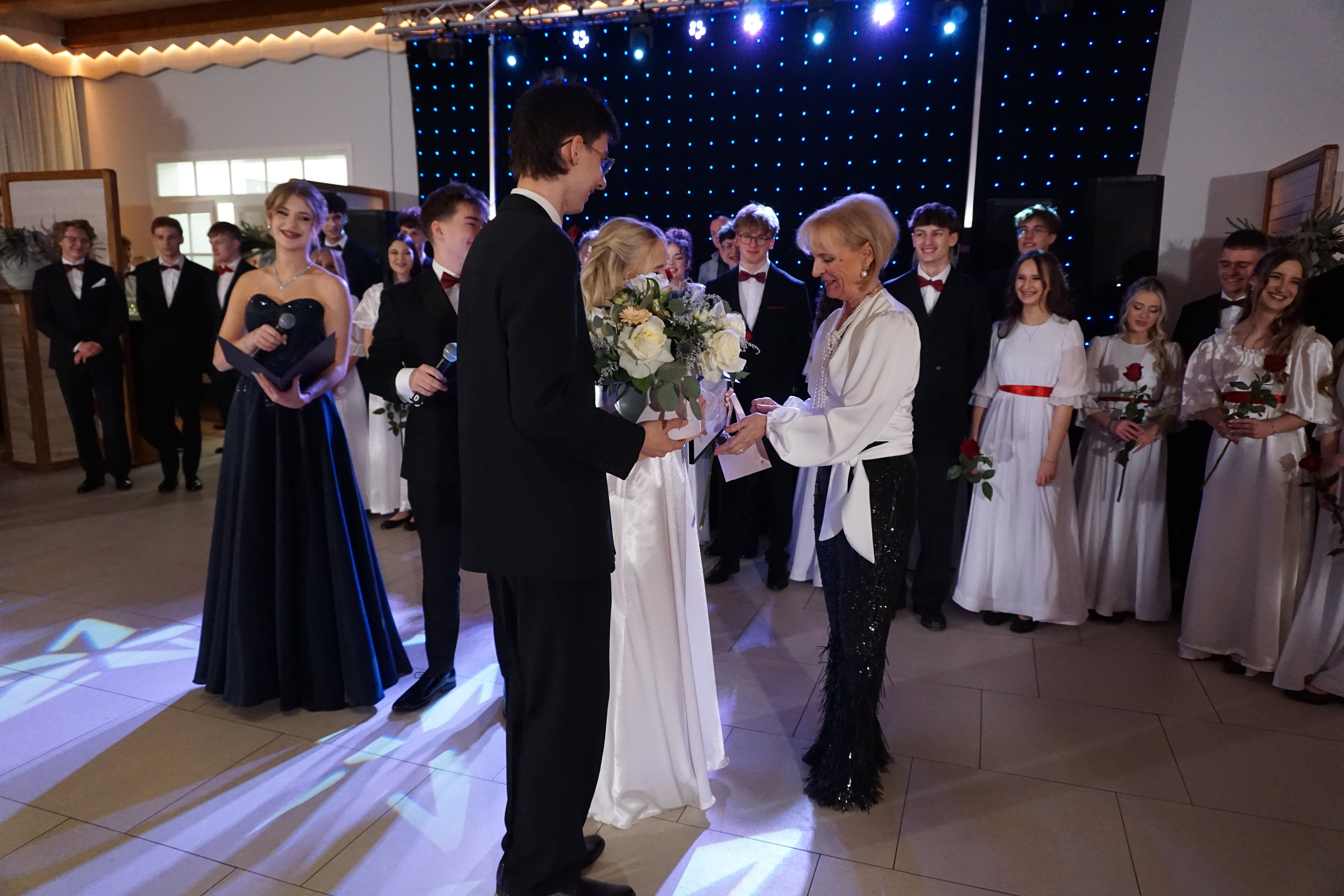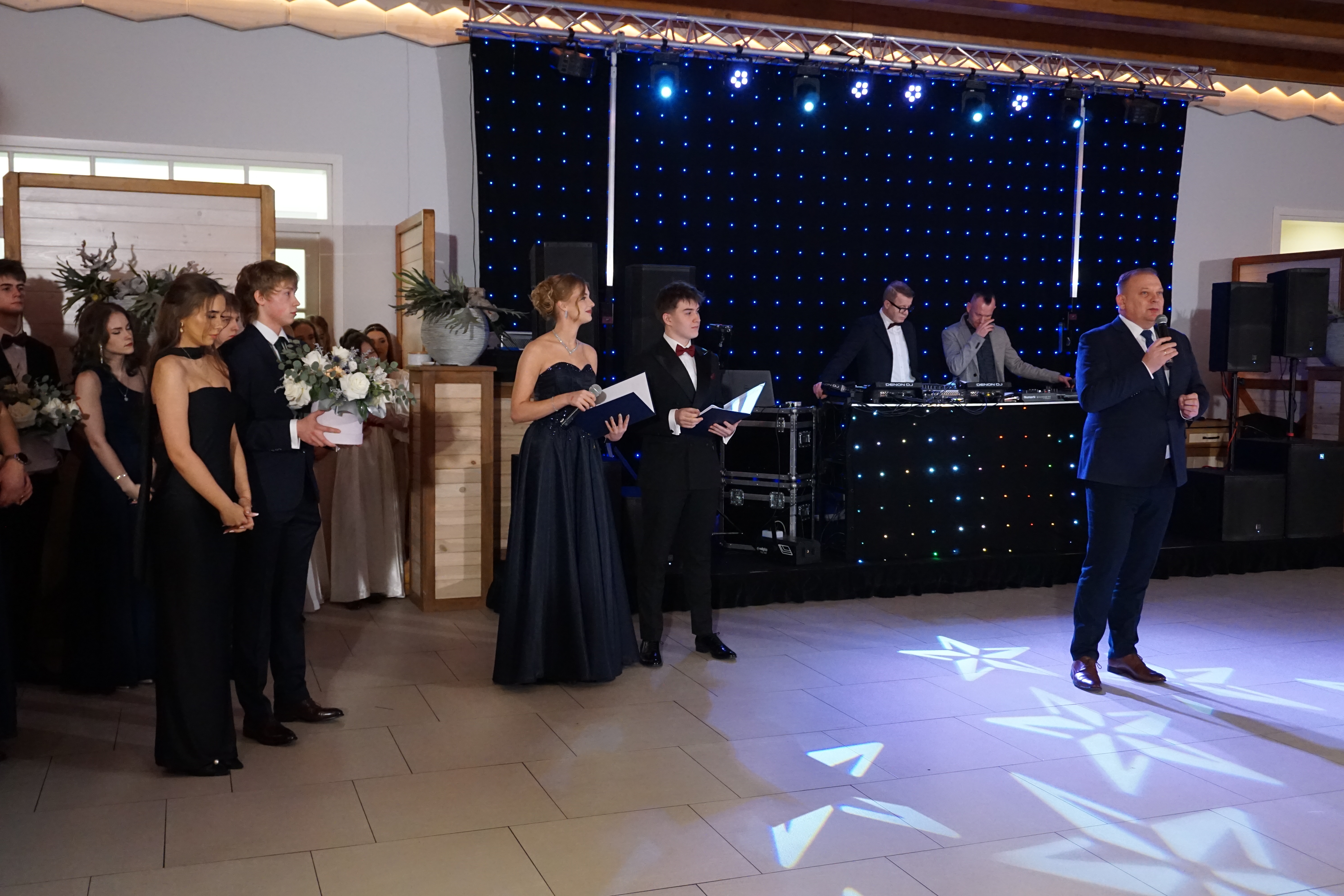 Oficjalnie bal rozpoczęła pani Agnieszka Jurewicz – dyrektor II LO, kierując ciepłe słowa i życzenia do maturzystów. Choć za chwilę wejdą w czas dorosłości i odpowiedzialności, a okres „bycia uczniem” niebawem się skończy , to bal ma być czasem pięknej, beztroskiej zabawy! Z życzeniami i słodkim upominkiem przybył też pan Michał Missan – Prezydent Miasta