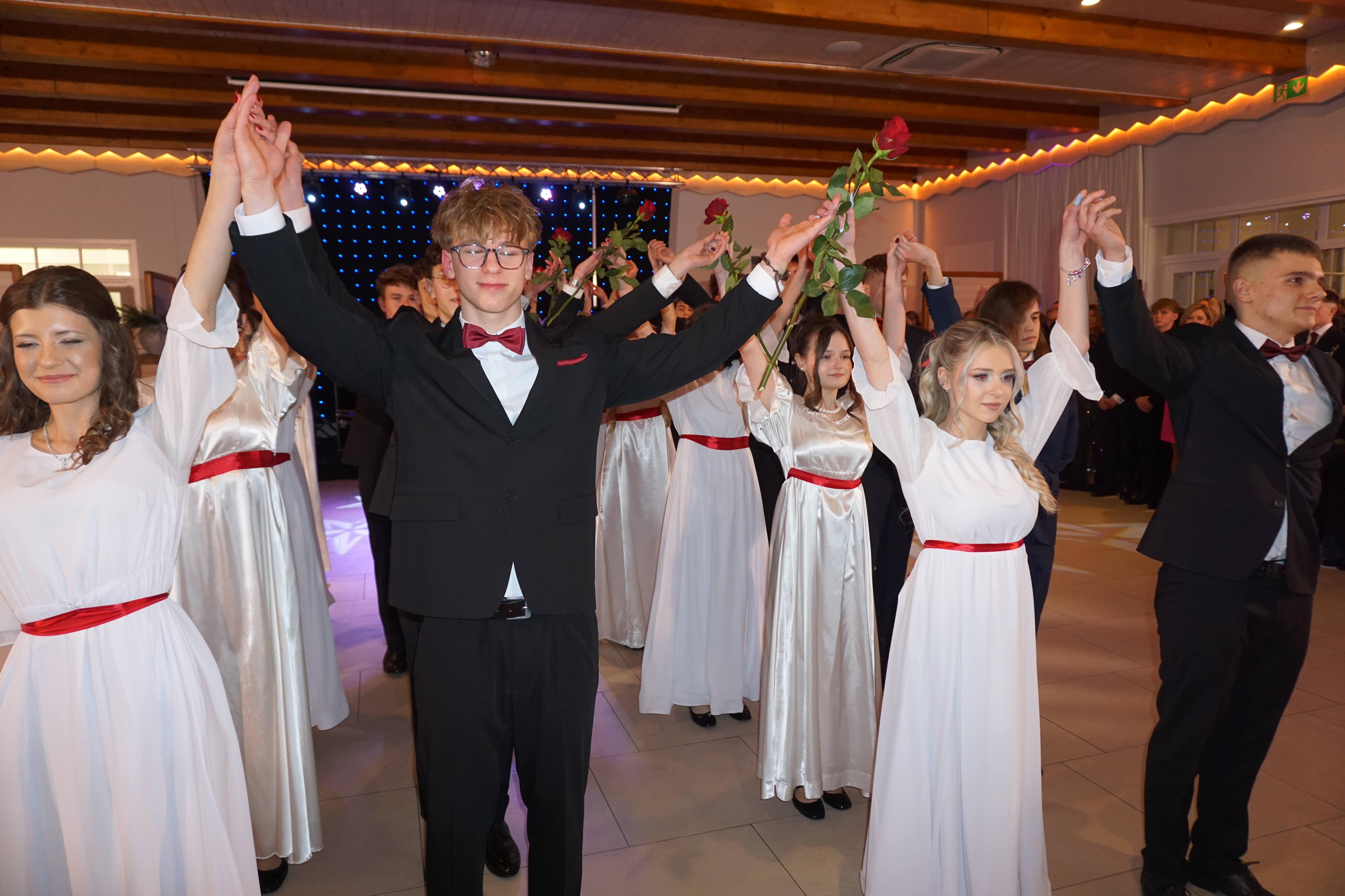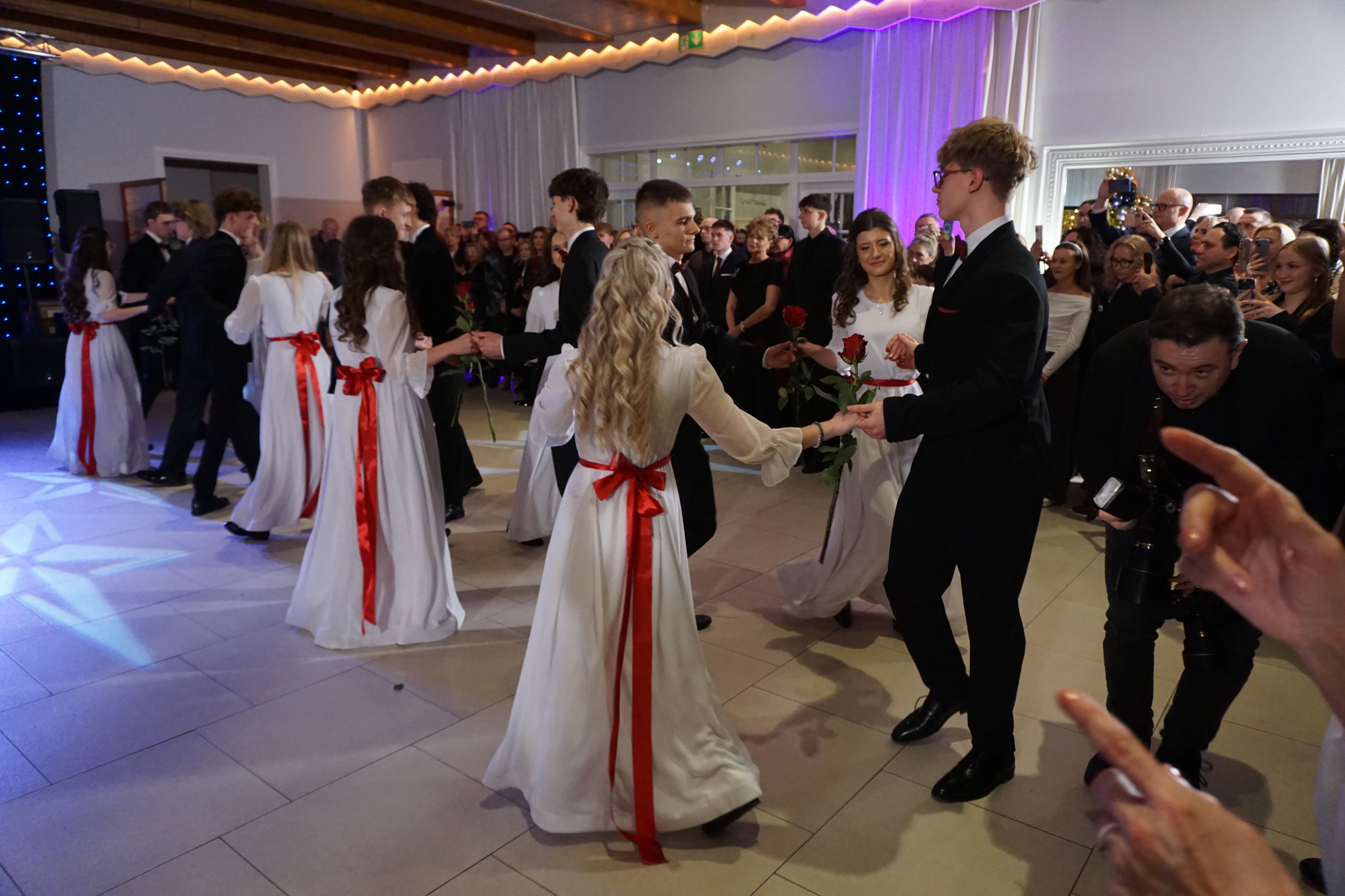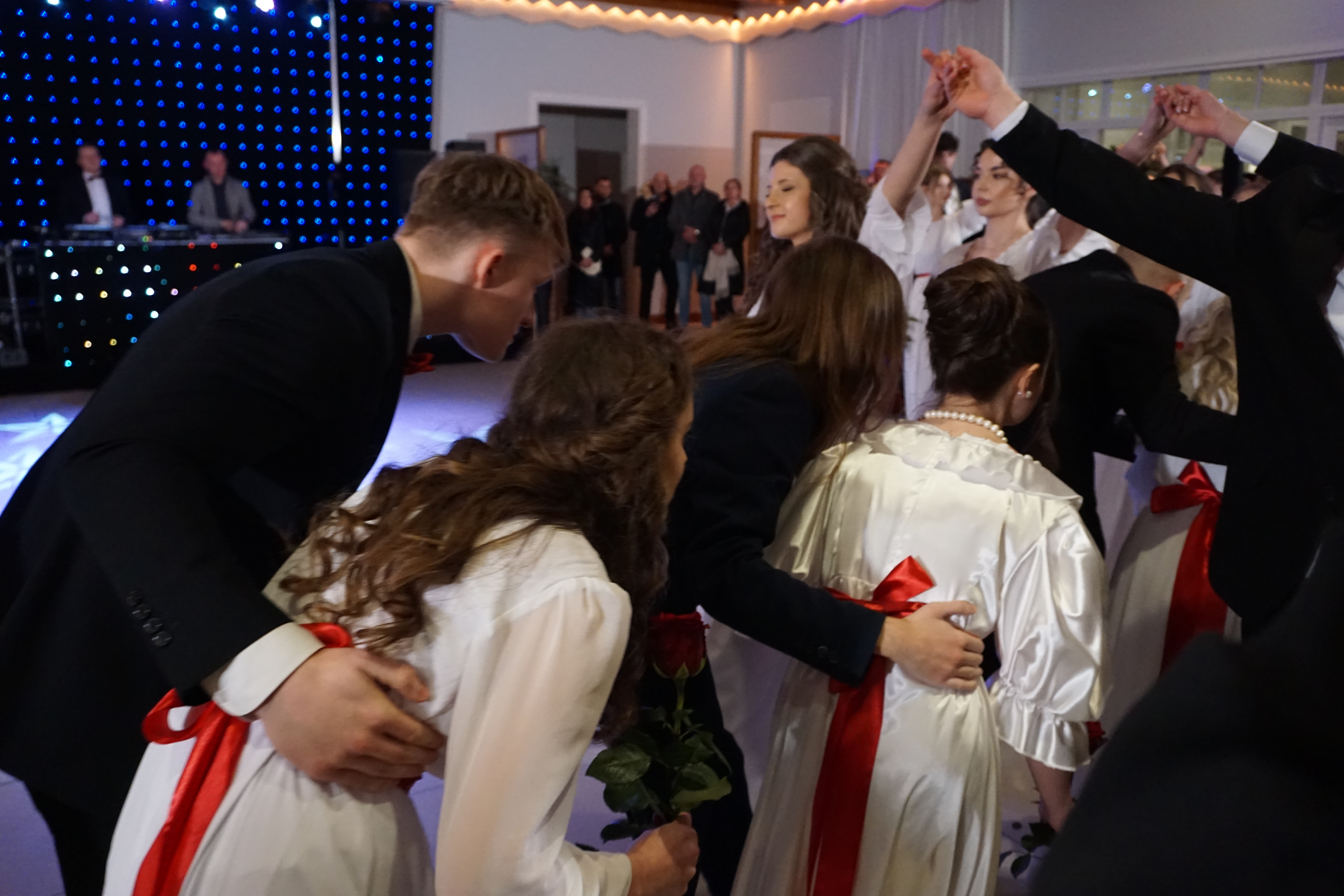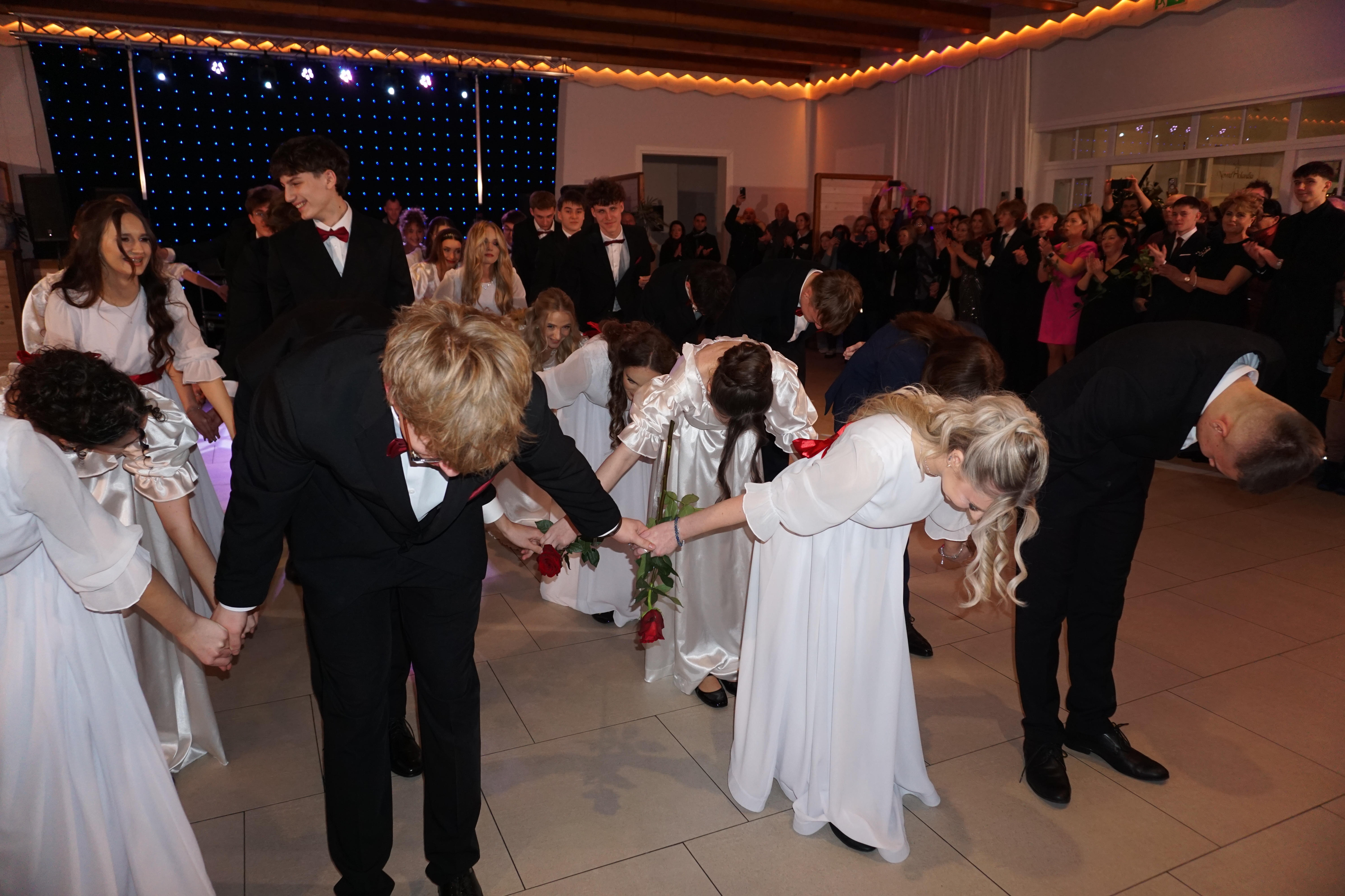Podsumowując, tradycji stało się zadość: stres przed polonez był, czerwone elementy na „szczęście” były, wzruszenia rodziców były, humor i śmiech obecny przez cały bal też! I co najważniejsze parkiet pękał w szwach bo młodzież tańczyła z wielką ochotą. Ach ten taniec, taniec, taniec…