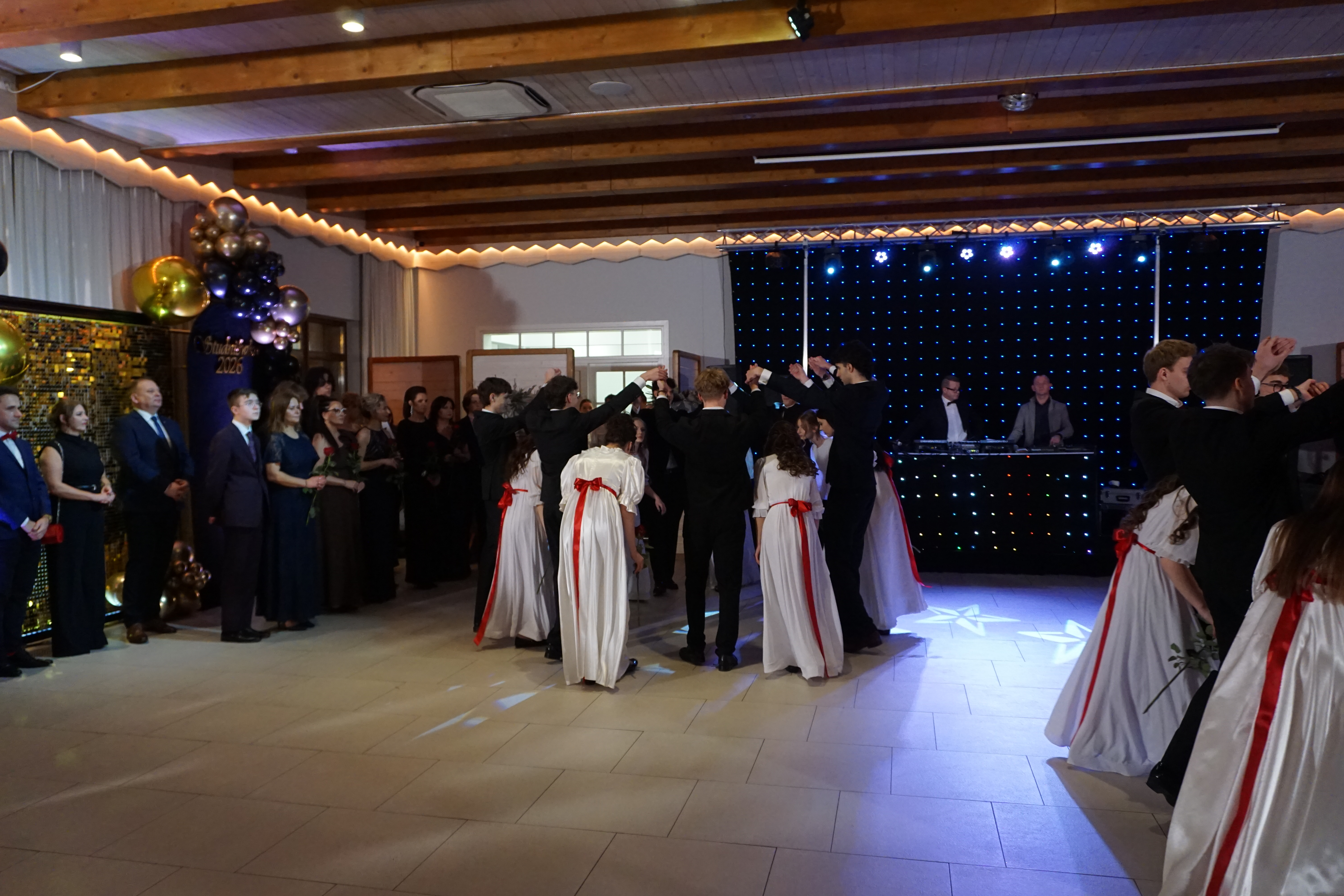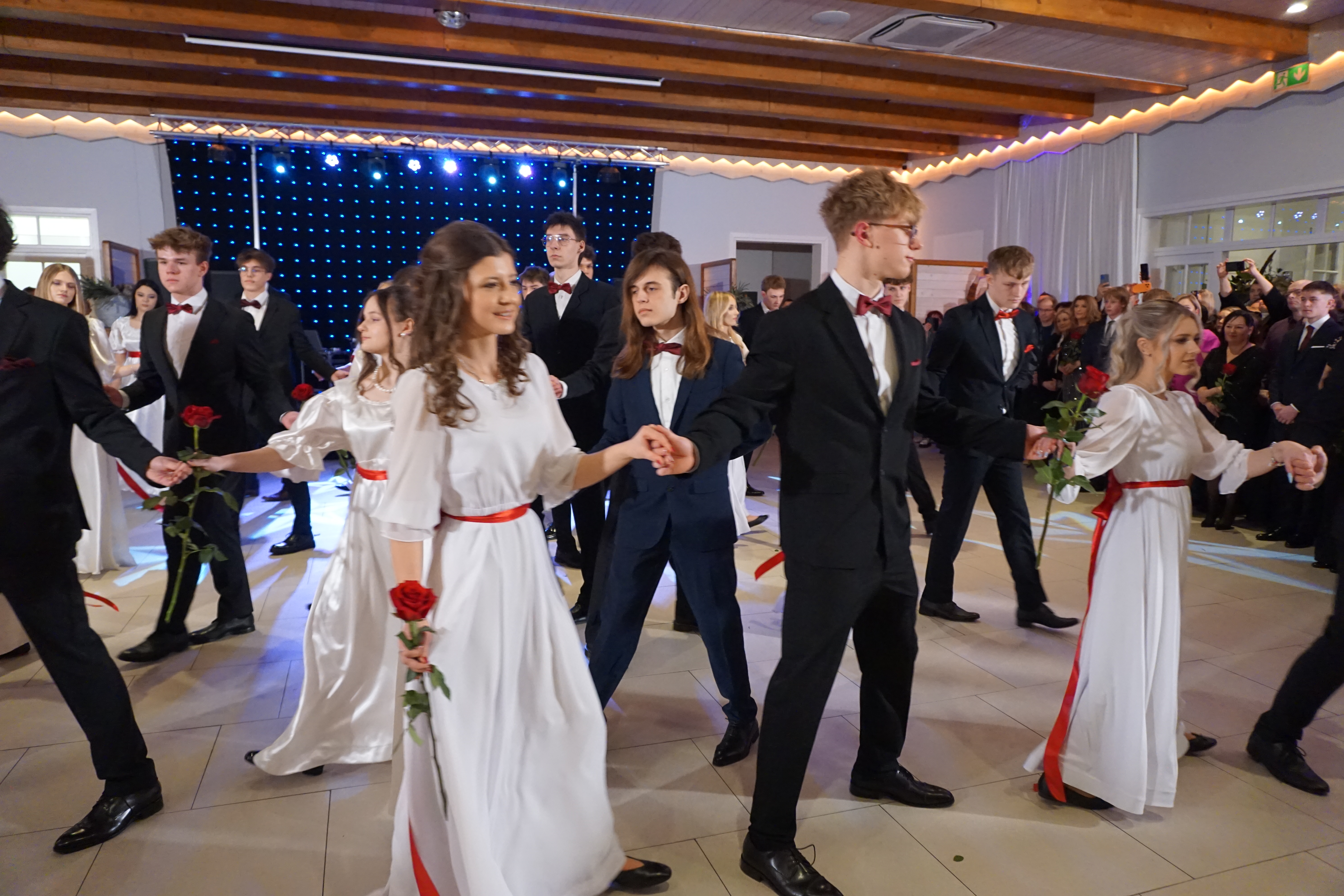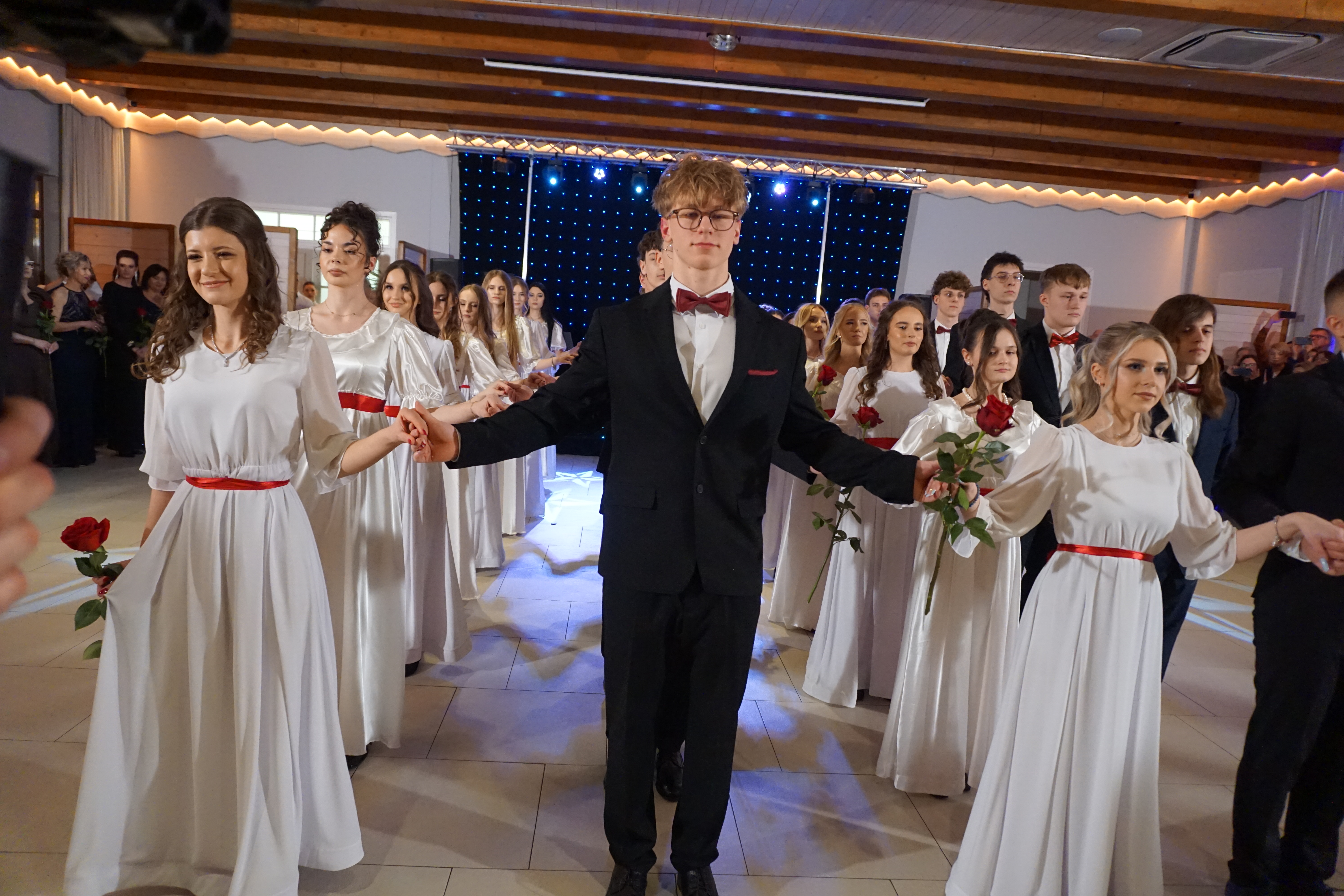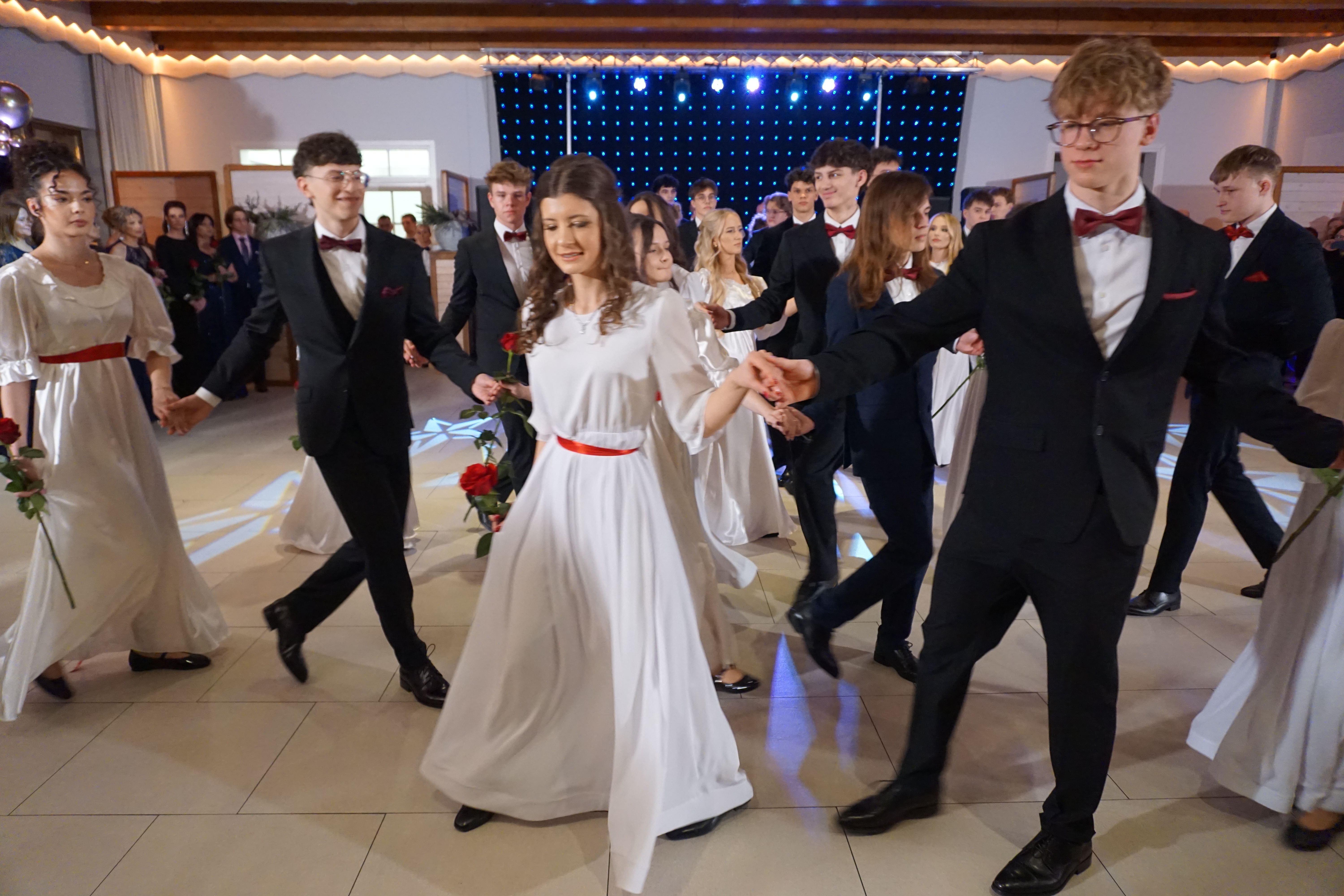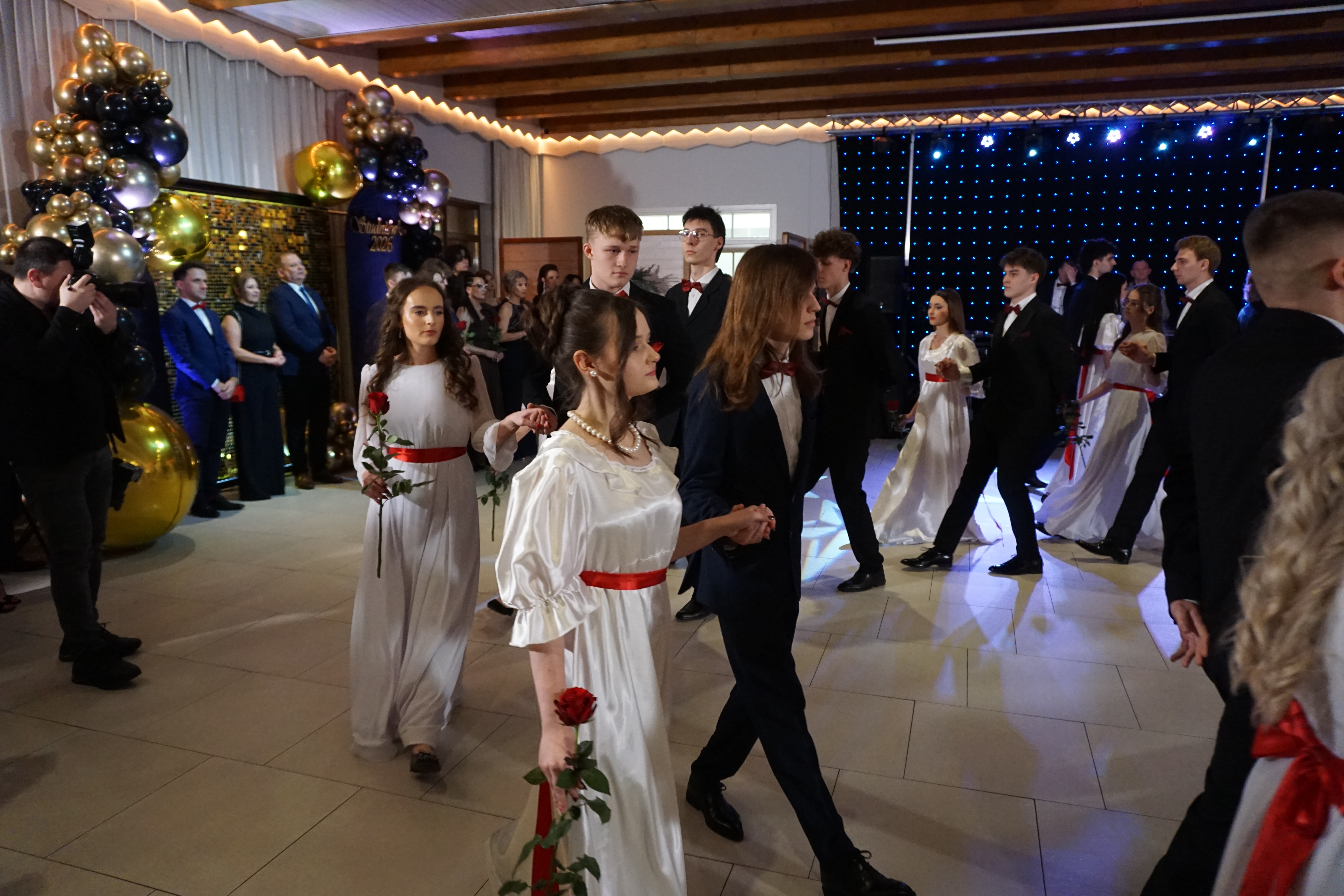 Podsumowując, tradycji stało się zadość: stres przed polonez był, czerwone elementy na „szczęście” były, wzruszenia rodziców były, humor i śmiech obecny przez cały bal też! I co najważniejsze parkiet pękał w szwach bo młodzież tańczyła z wielką ochotą. Ach ten taniec, taniec, taniec…