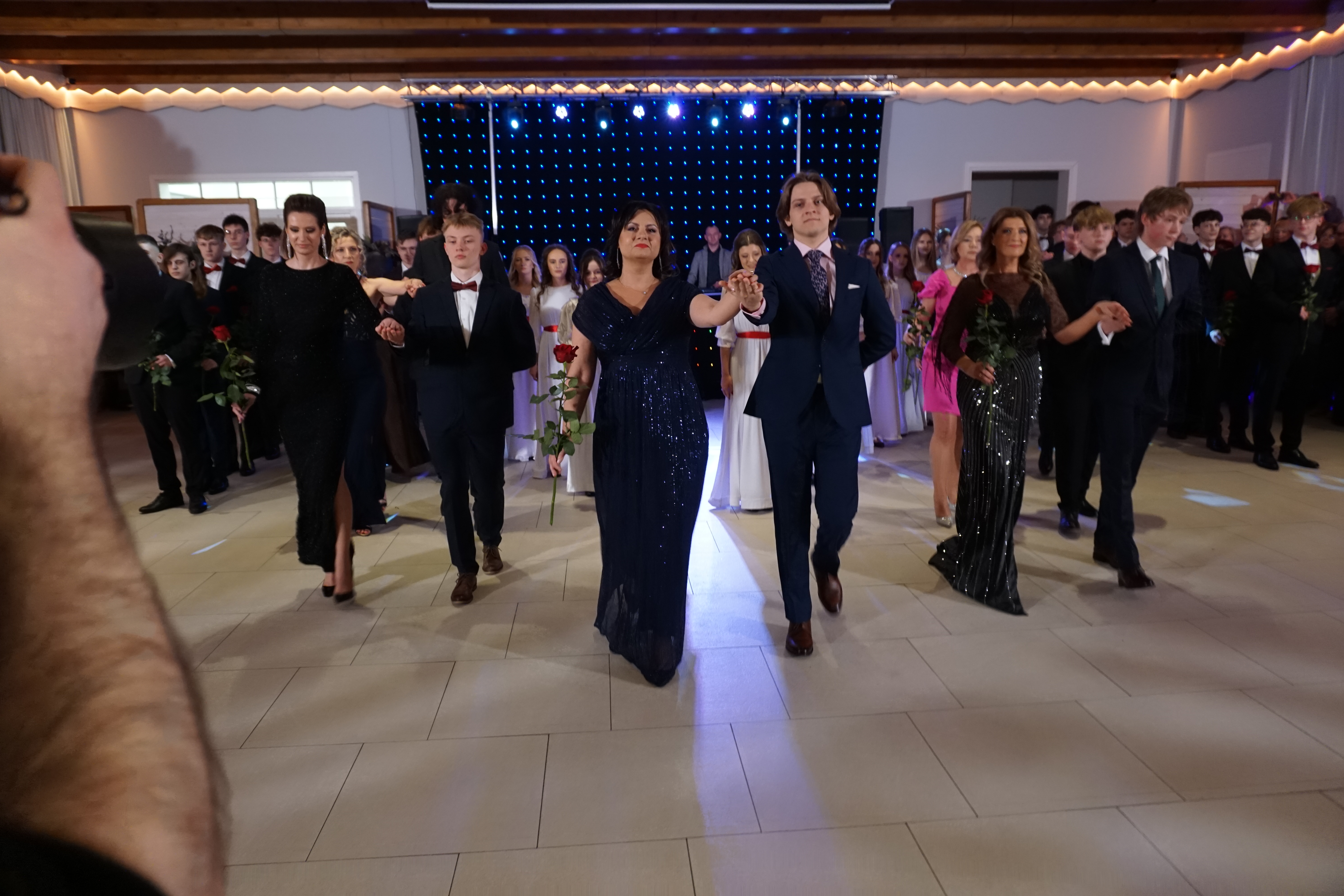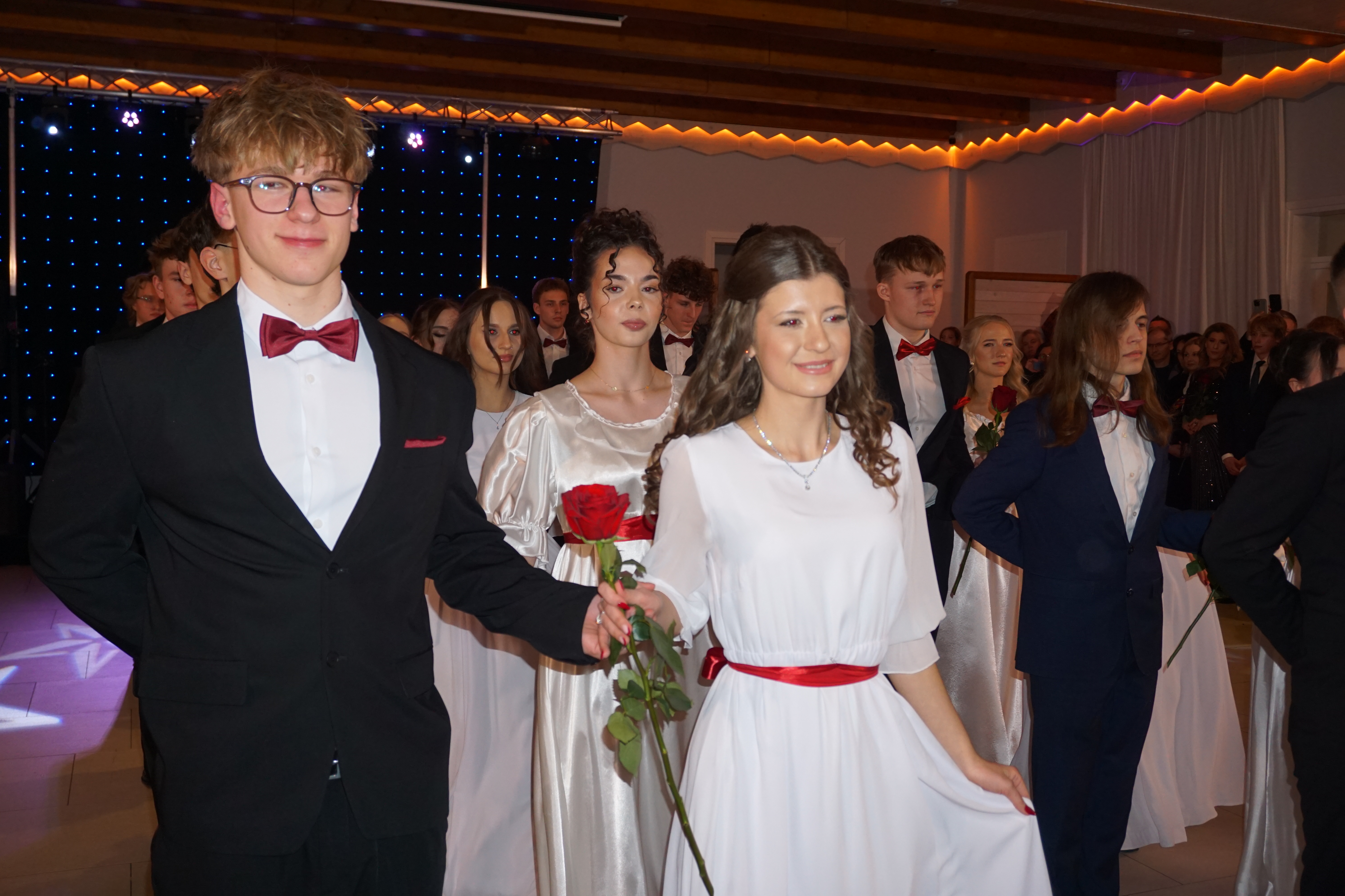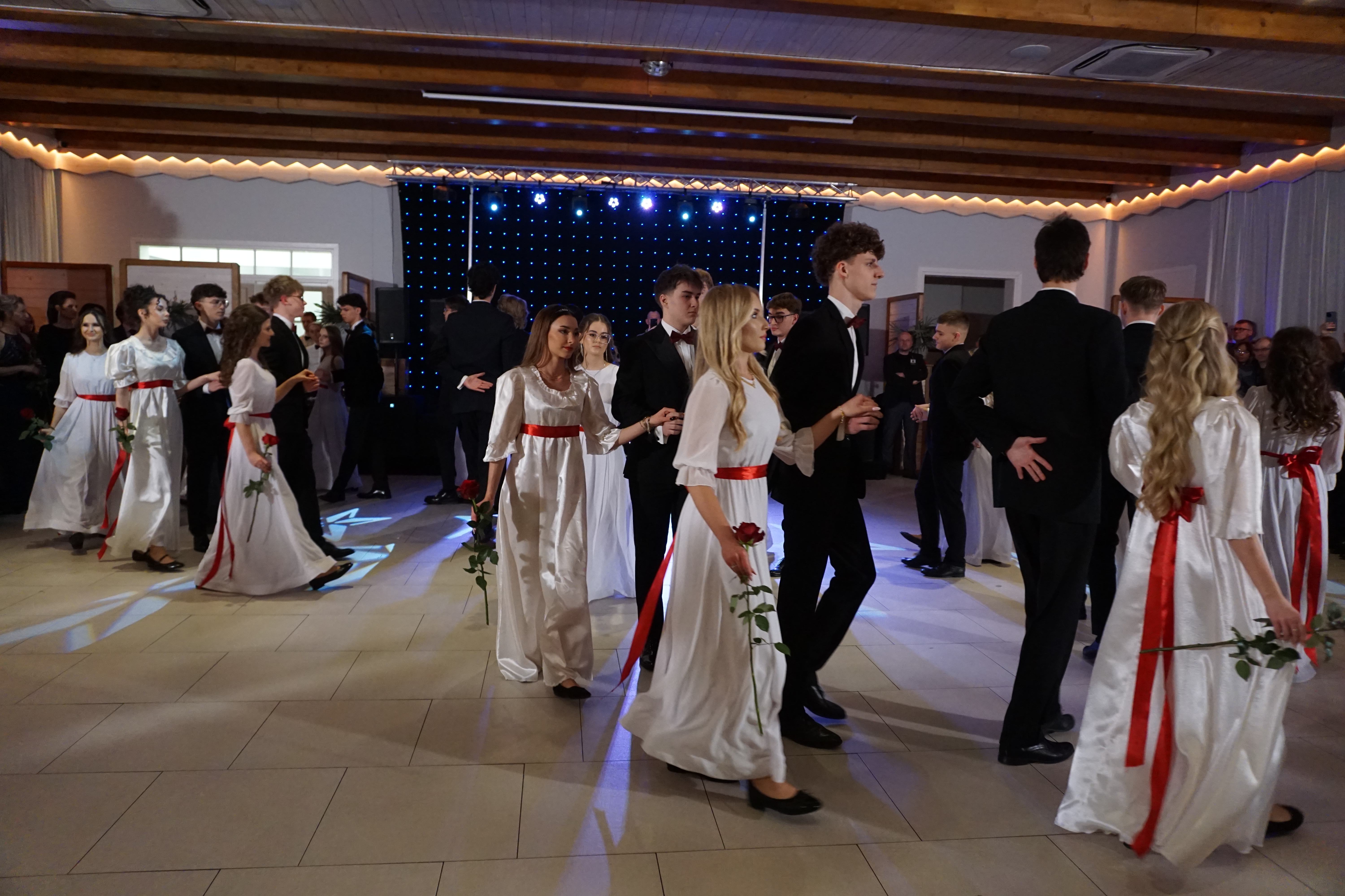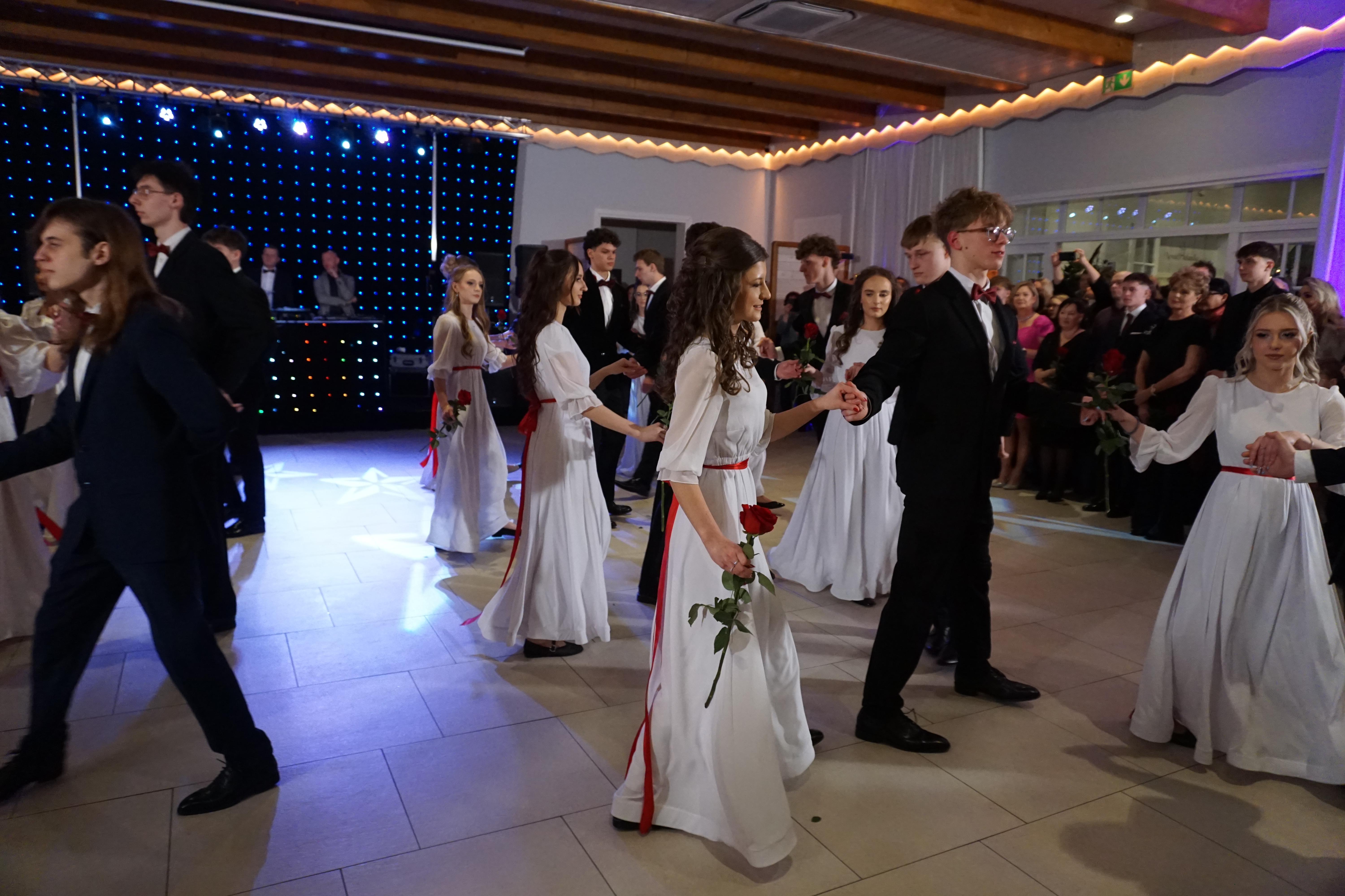 Podsumowując, tradycji stało się zadość: stres przed polonez był, czerwone elementy na „szczęście” były, wzruszenia rodziców były, humor i śmiech obecny przez cały bal też! I co najważniejsze parkiet pękał w szwach bo młodzież tańczyła z wielką ochotą. Ach ten taniec, taniec, taniec…