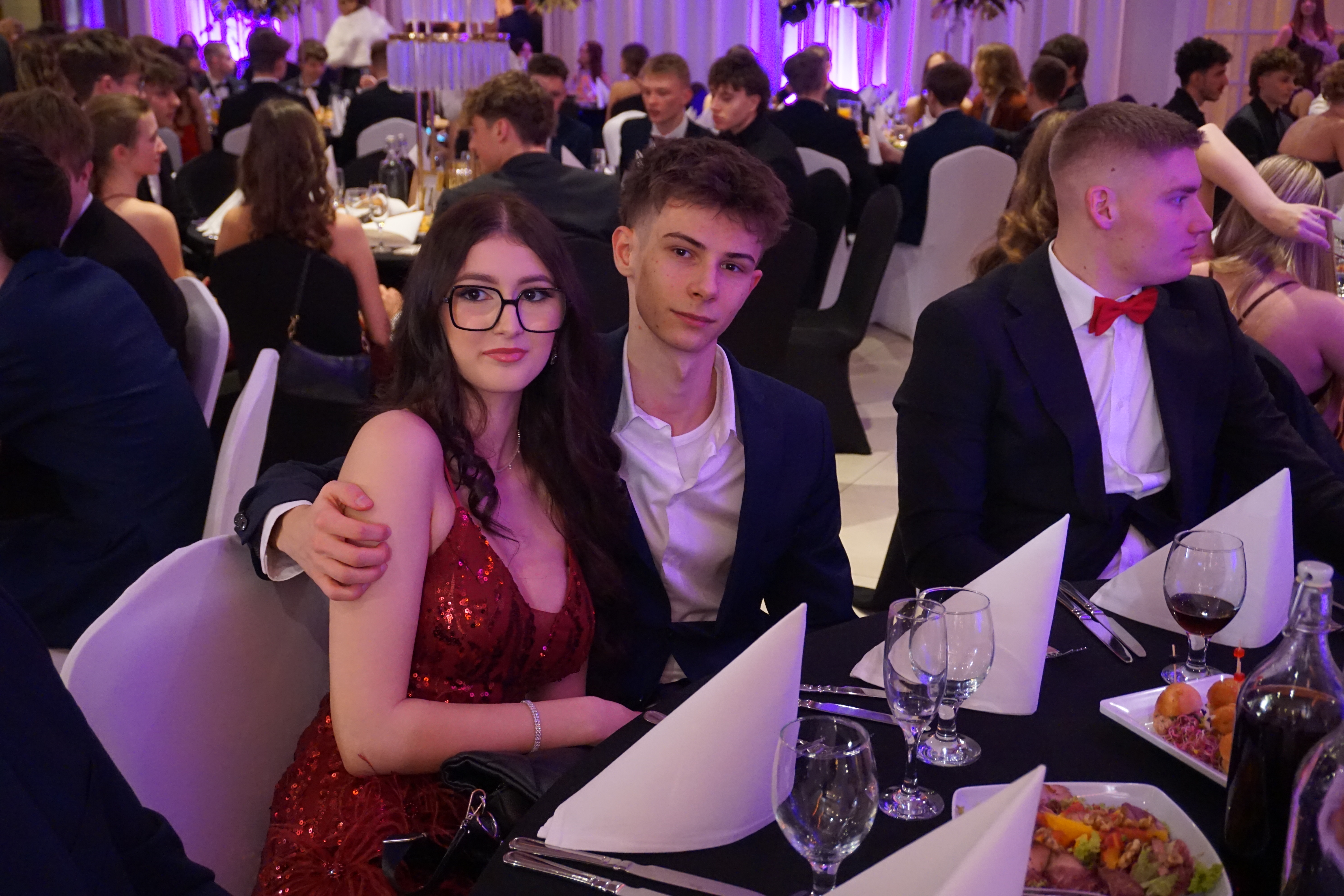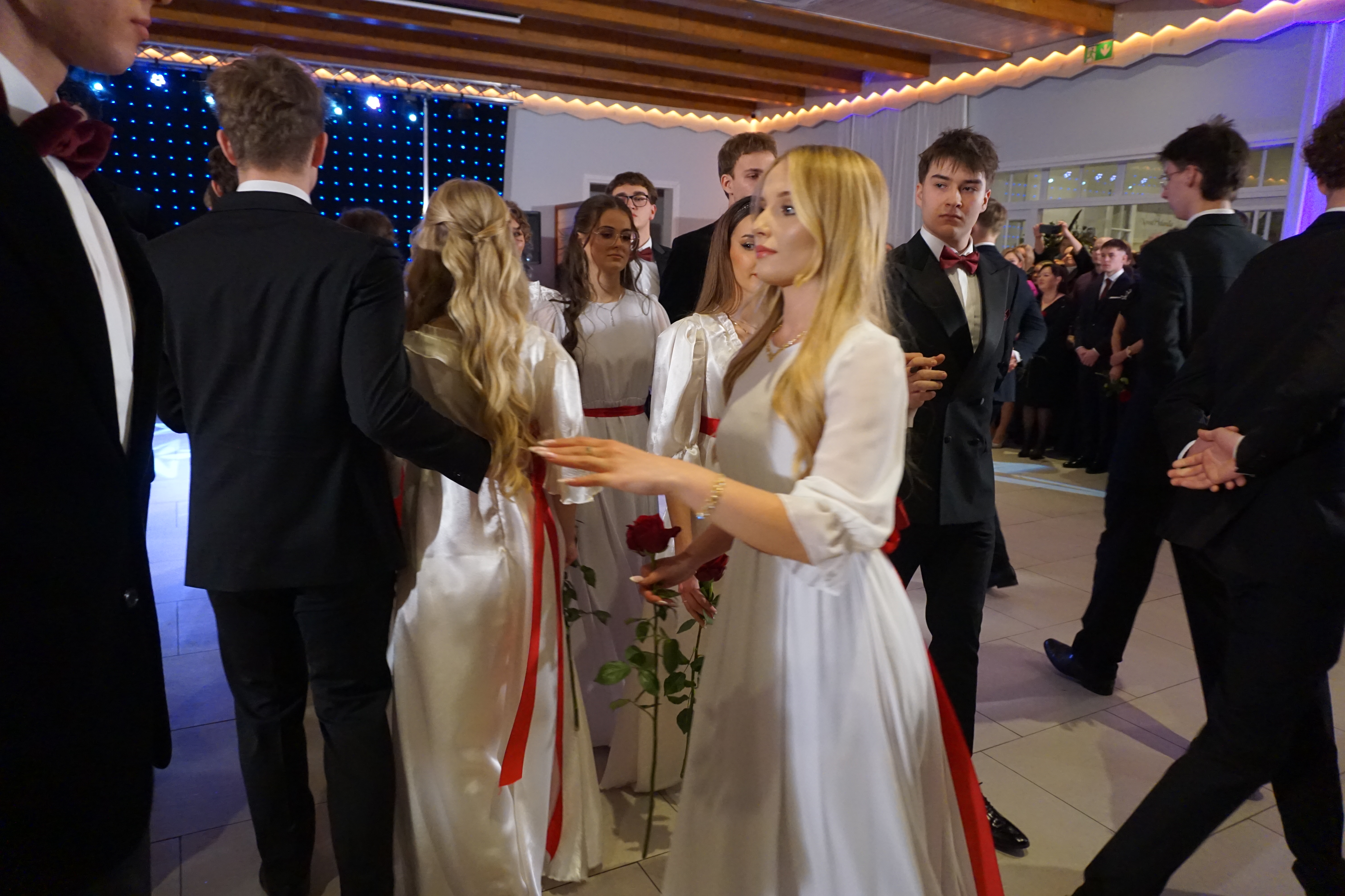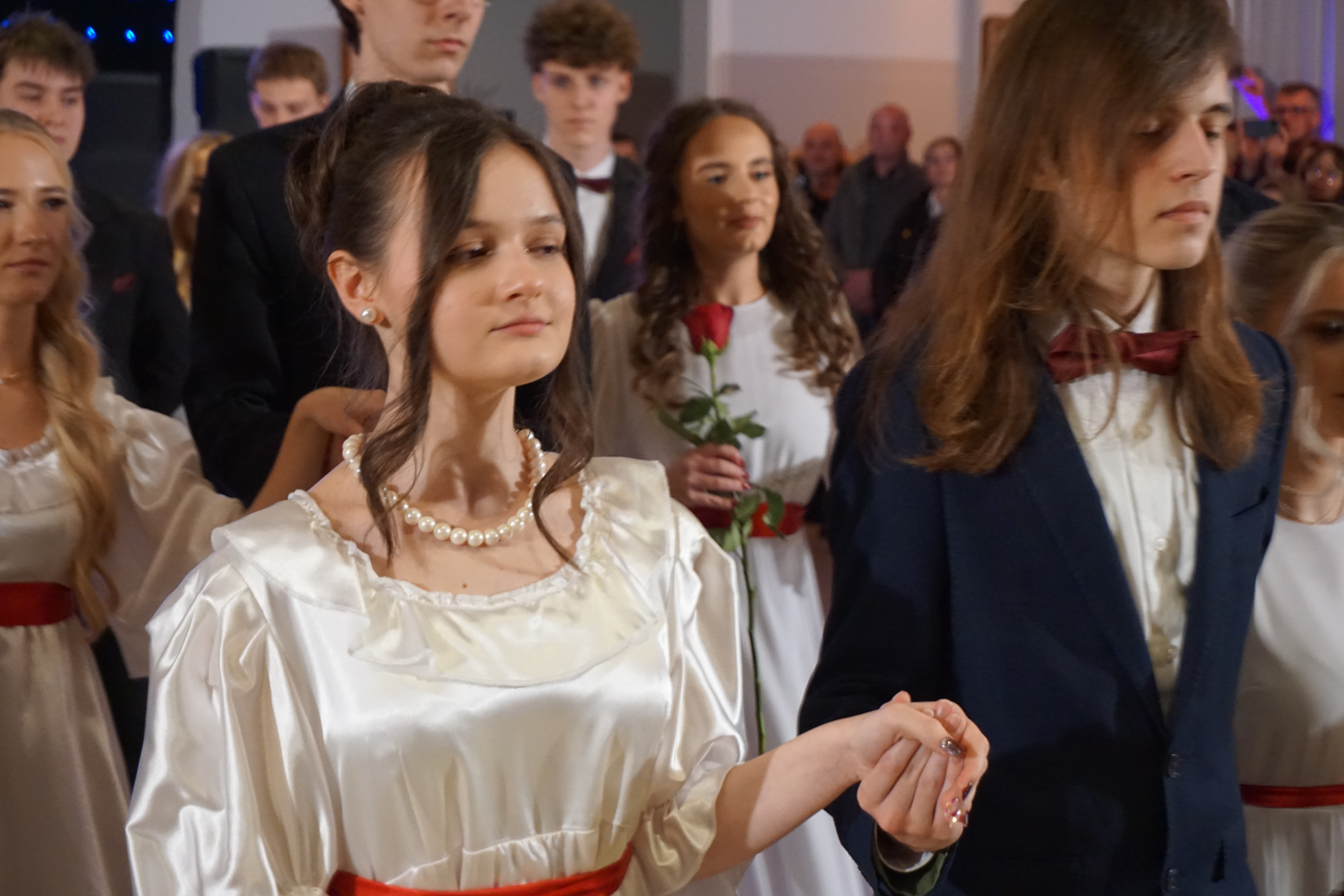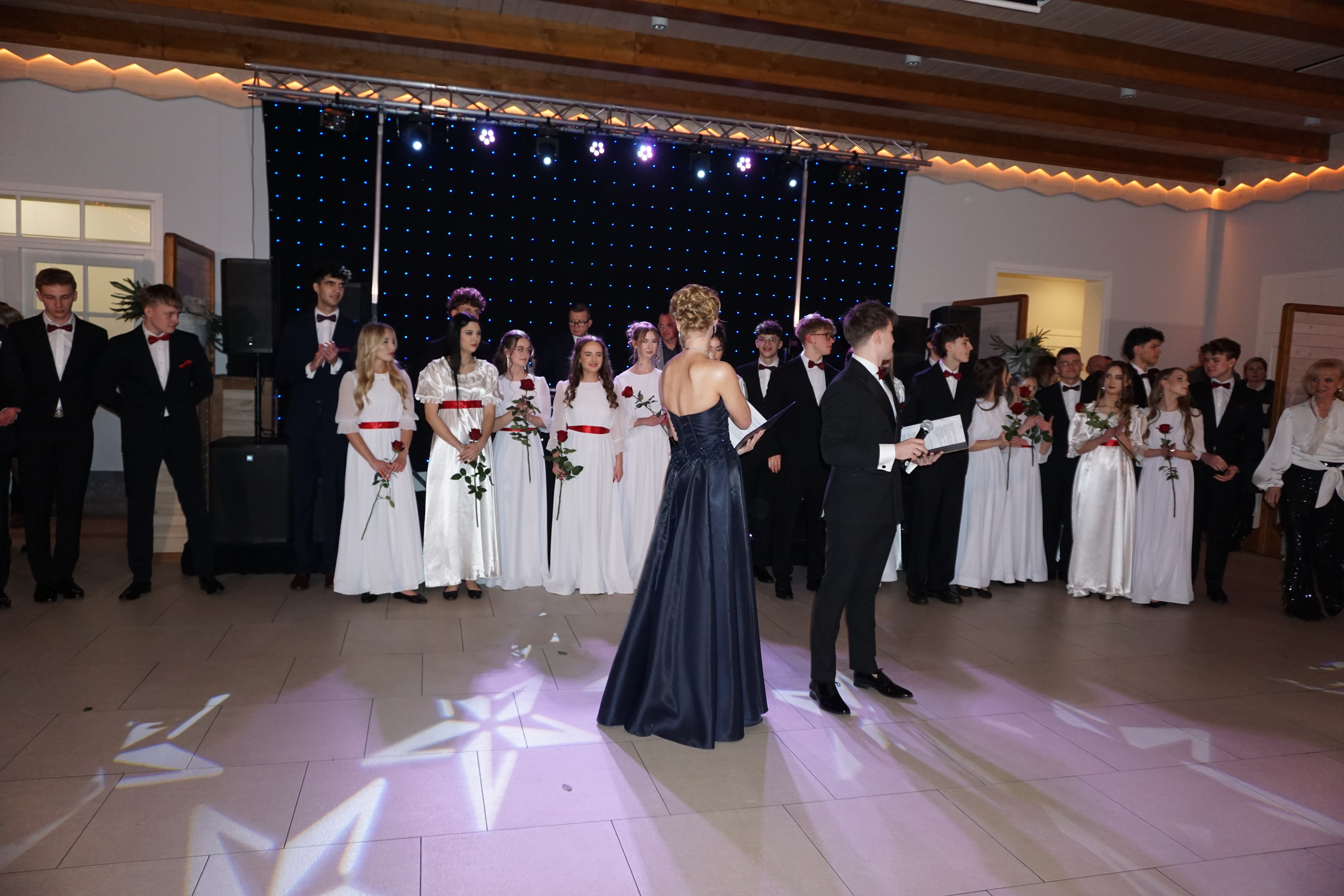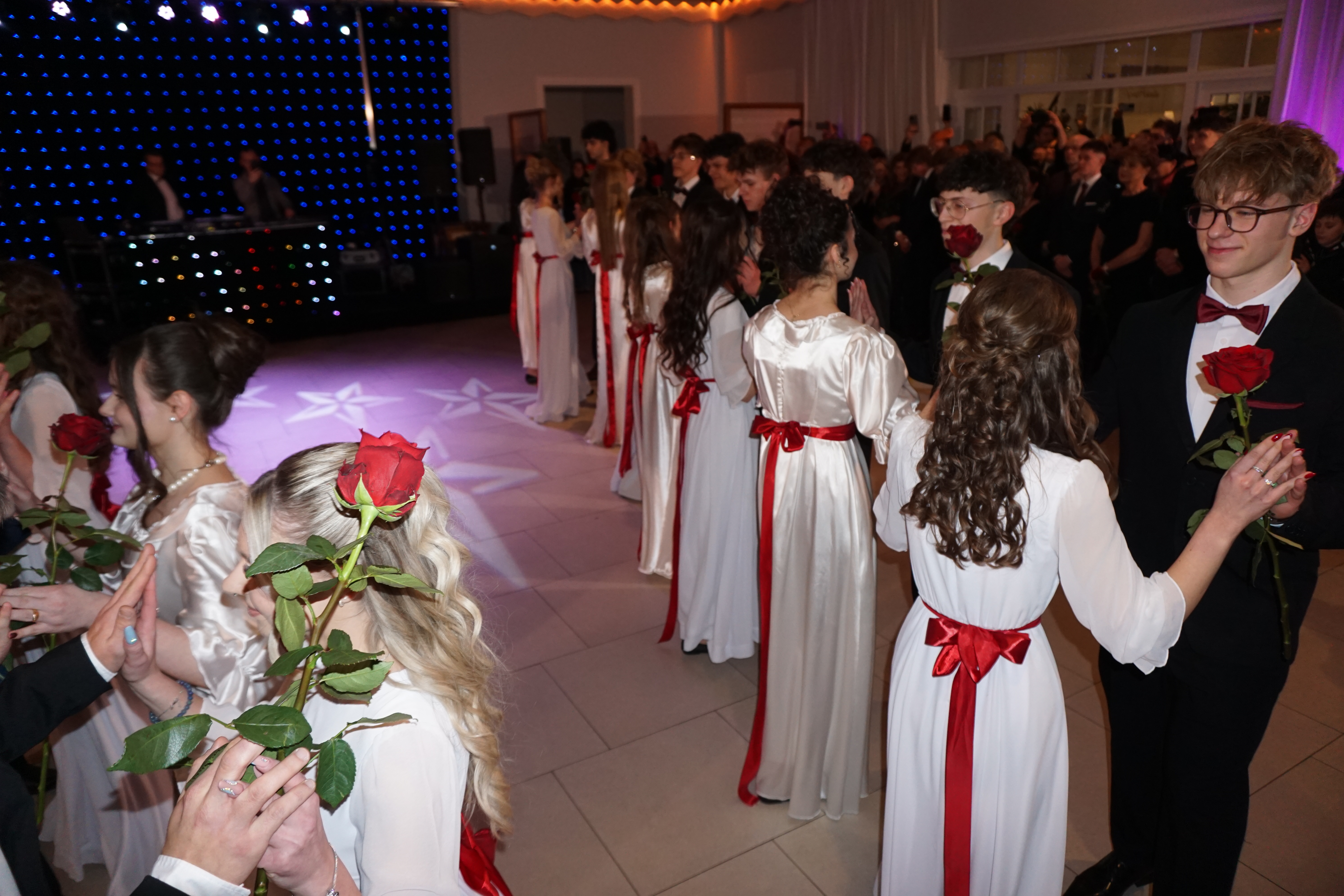 Podsumowując, tradycji stało się zadość: stres przed polonez był, czerwone elementy na „szczęście” były, wzruszenia rodziców były, humor i śmiech obecny przez cały bal też! I co najważniejsze parkiet pękał w szwach bo młodzież tańczyła z wielką ochotą. Ach ten taniec, taniec, taniec…
