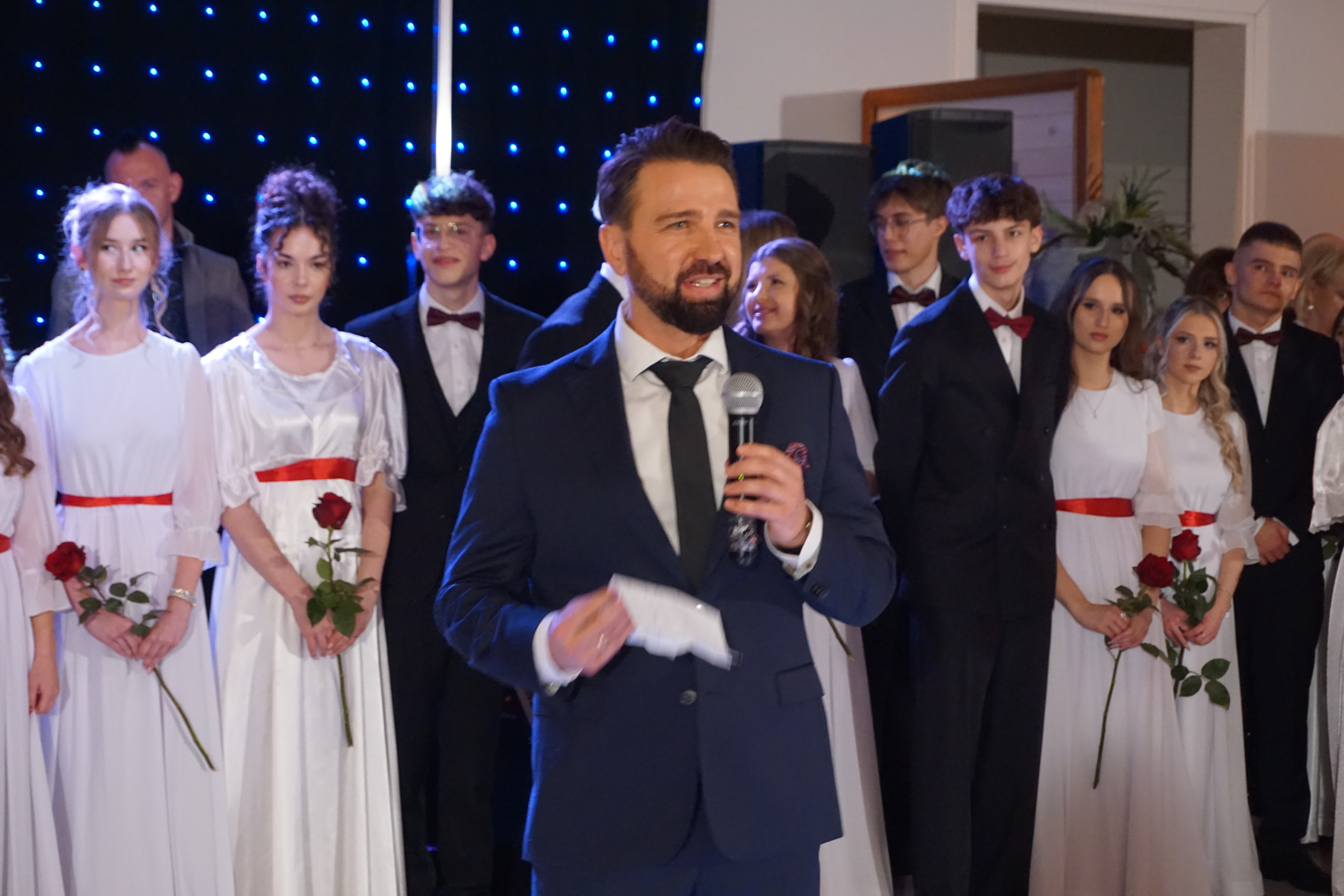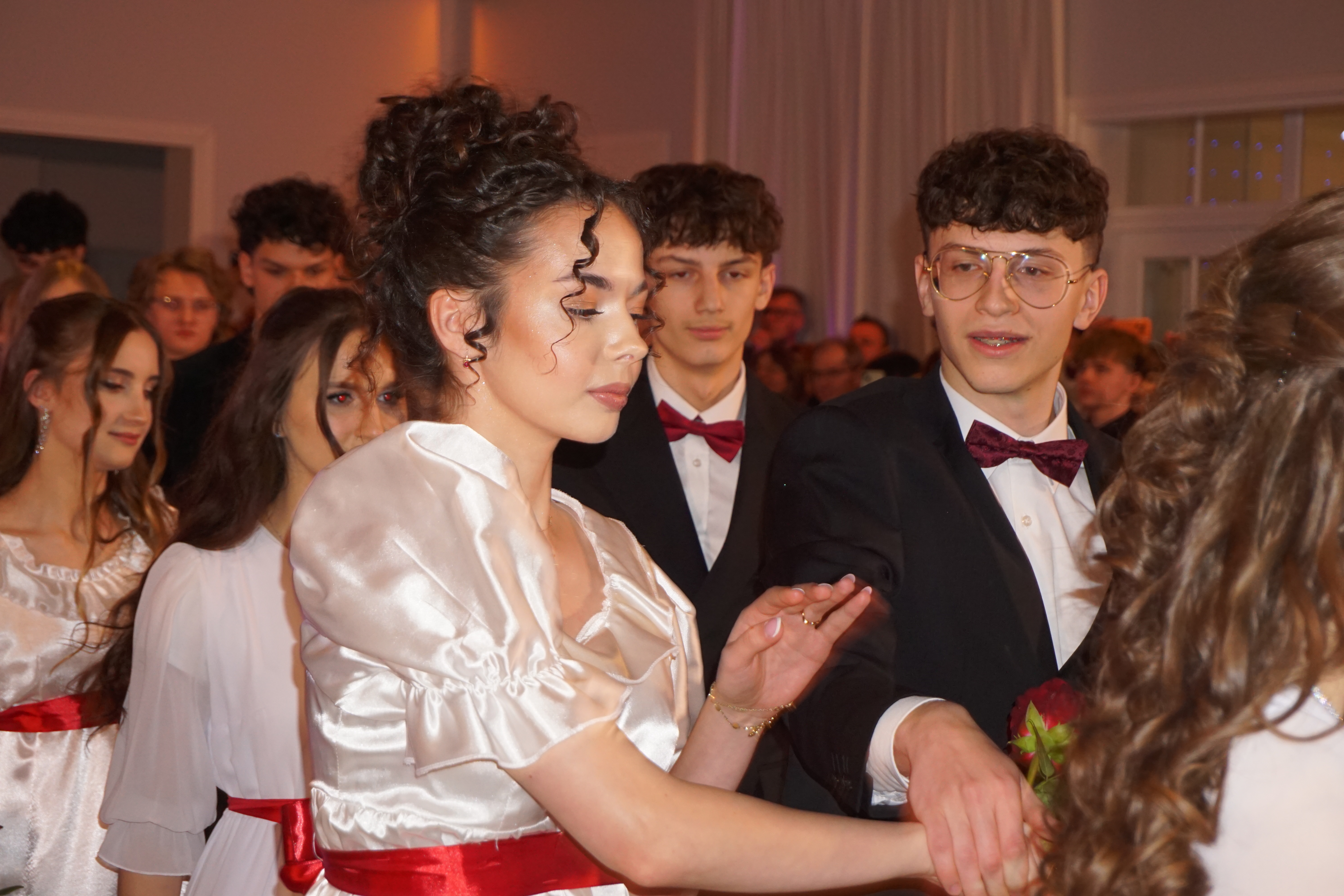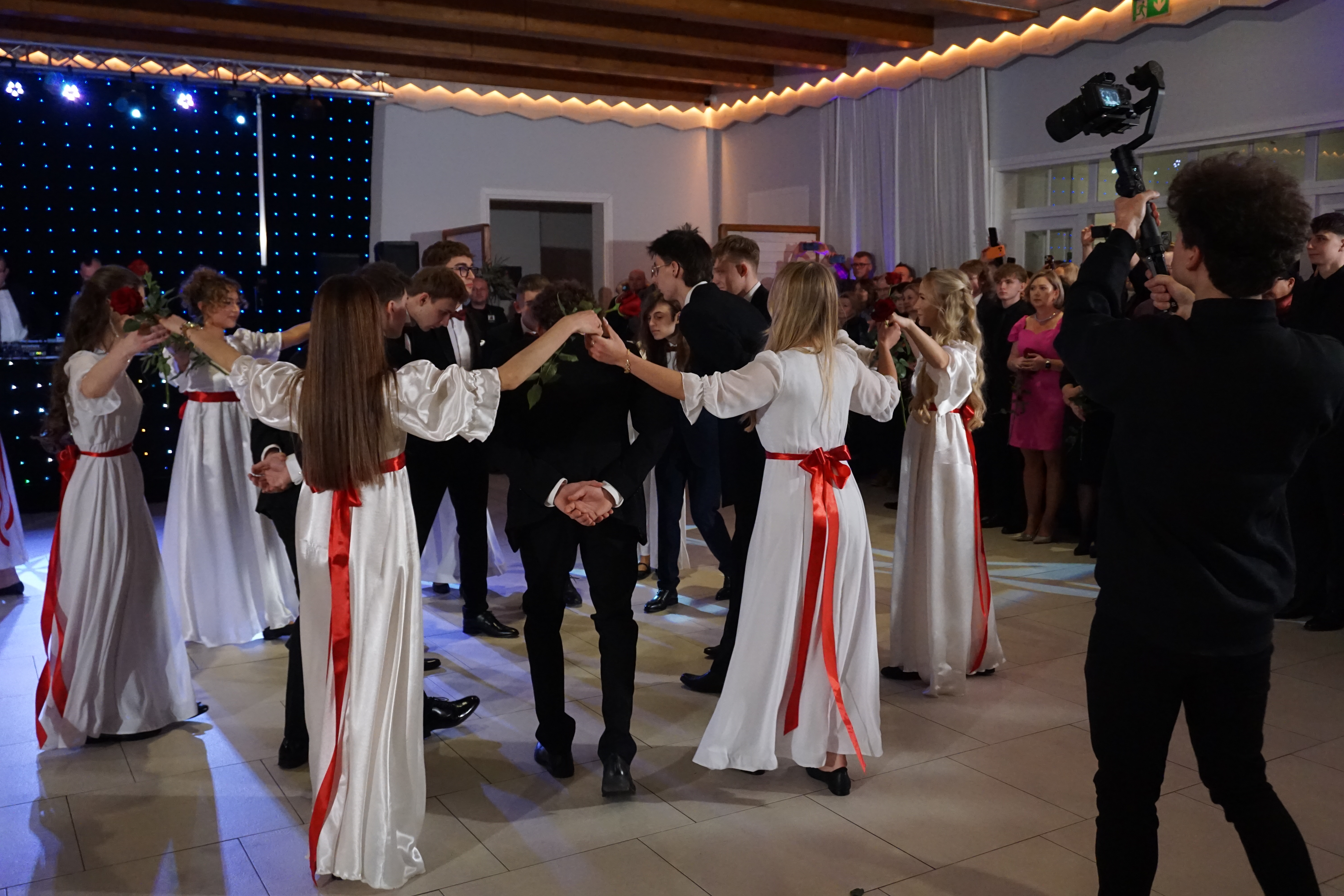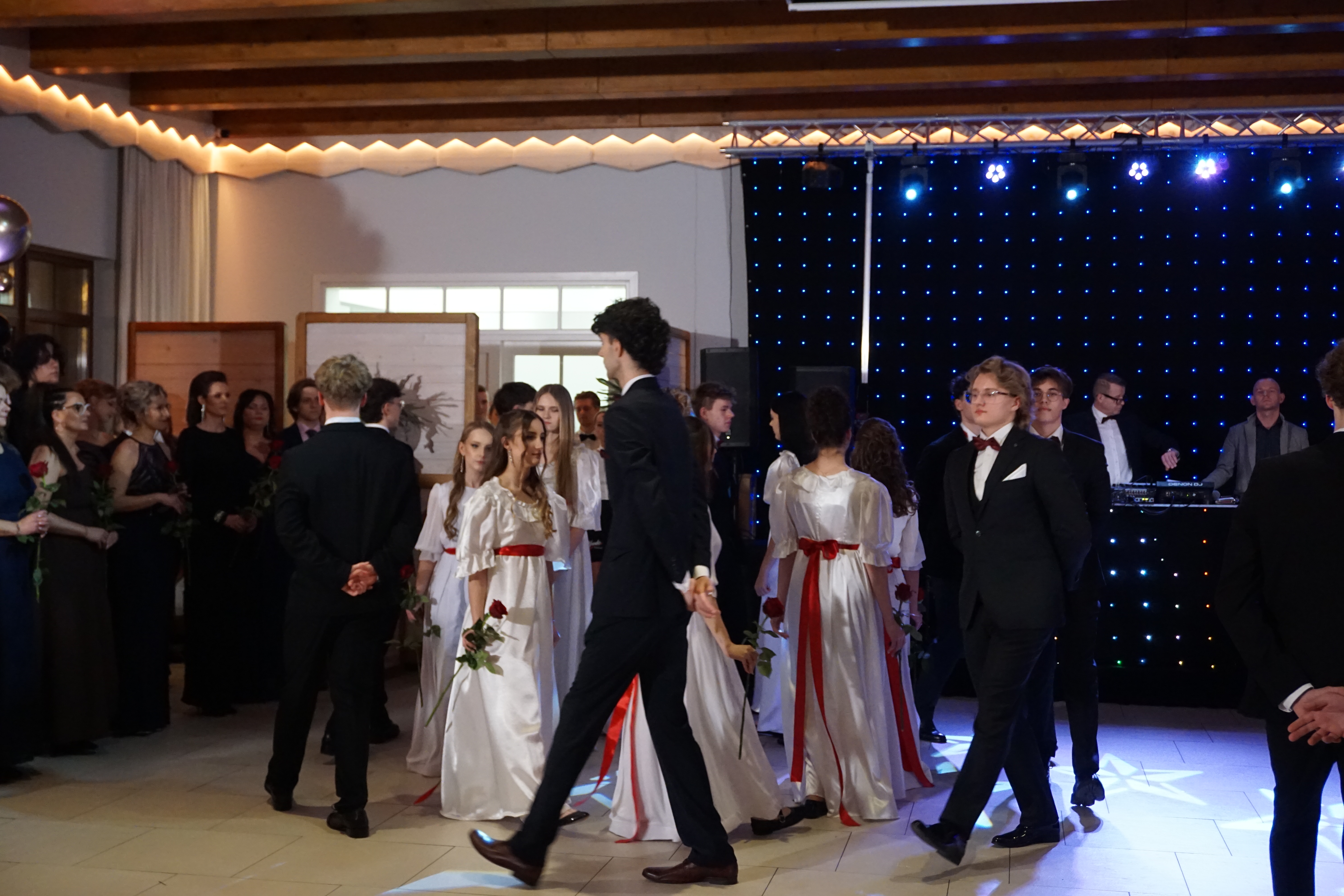 Podsumowując, tradycji stało się zadość: stres przed polonez był, czerwone elementy na „szczęście” były, wzruszenia rodziców były, humor i śmiech obecny przez cały bal też! I co najważniejsze parkiet pękał w szwach bo młodzież tańczyła z wielką ochotą. Ach ten taniec, taniec, taniec…