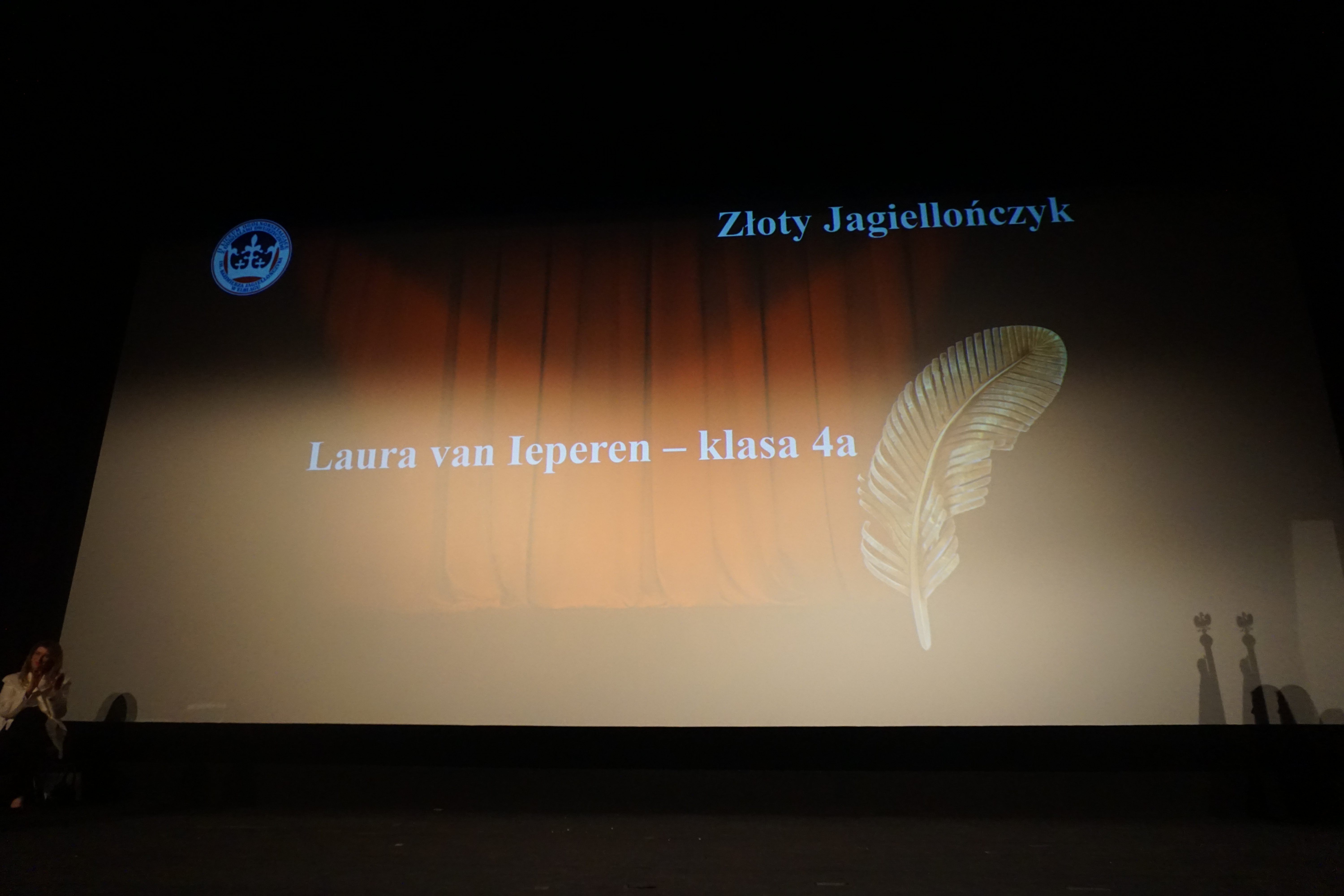 W tym roku Z艂otego Jagiello艅czyka otrzyma艂a Laura van Ieperen z klasy 4a. Laura 聽uplasowa艂a si臋 tym samym na pierwszym miejscu z tzw. Z艂otej Dziesi膮tce, czyli w dziesi膮tce uczni贸w z najwy偶szymi 艣rednimi ocen.