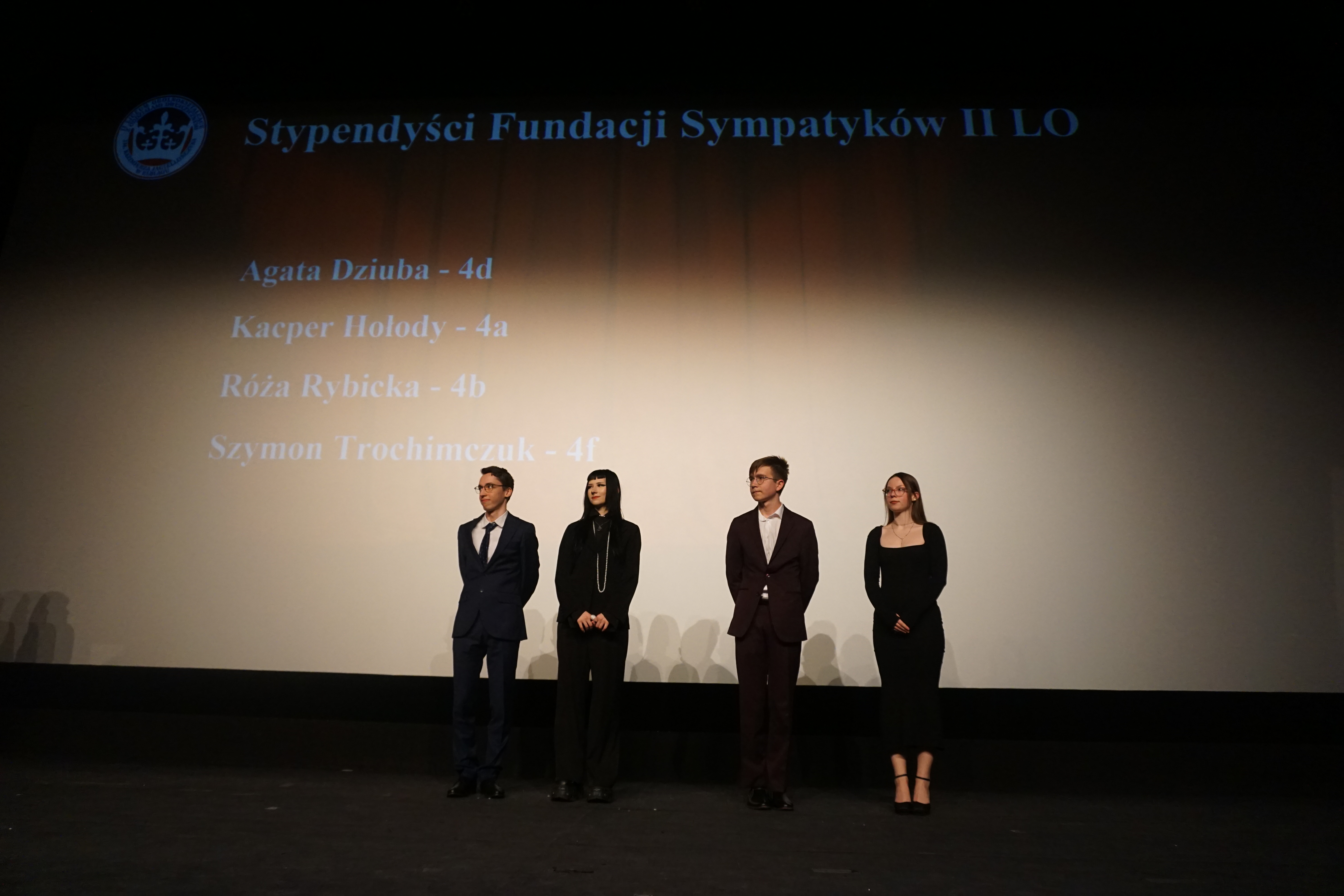 Warto te偶 podkre艣li膰, 偶e nasza szko艂a od wielu lat wspierana jest przez Fundacj臋 Sympatyk贸w II LO. Fundacja nagradza finansowo uczni贸w naszej szko艂y za dzia艂alno艣膰 i zaanga偶owanie w r贸偶nych kategoriach i dziedzinach. W tym roku przyzna艂a stypendia pieni臋偶ne nast臋puj膮cym maturzystom:聽 Agacie Dziubie 4d, Kacprowi Ho艂ody 4a, R贸偶y Rybickiej 4b oraz Szymonowi Trochimczukowi 4f.
