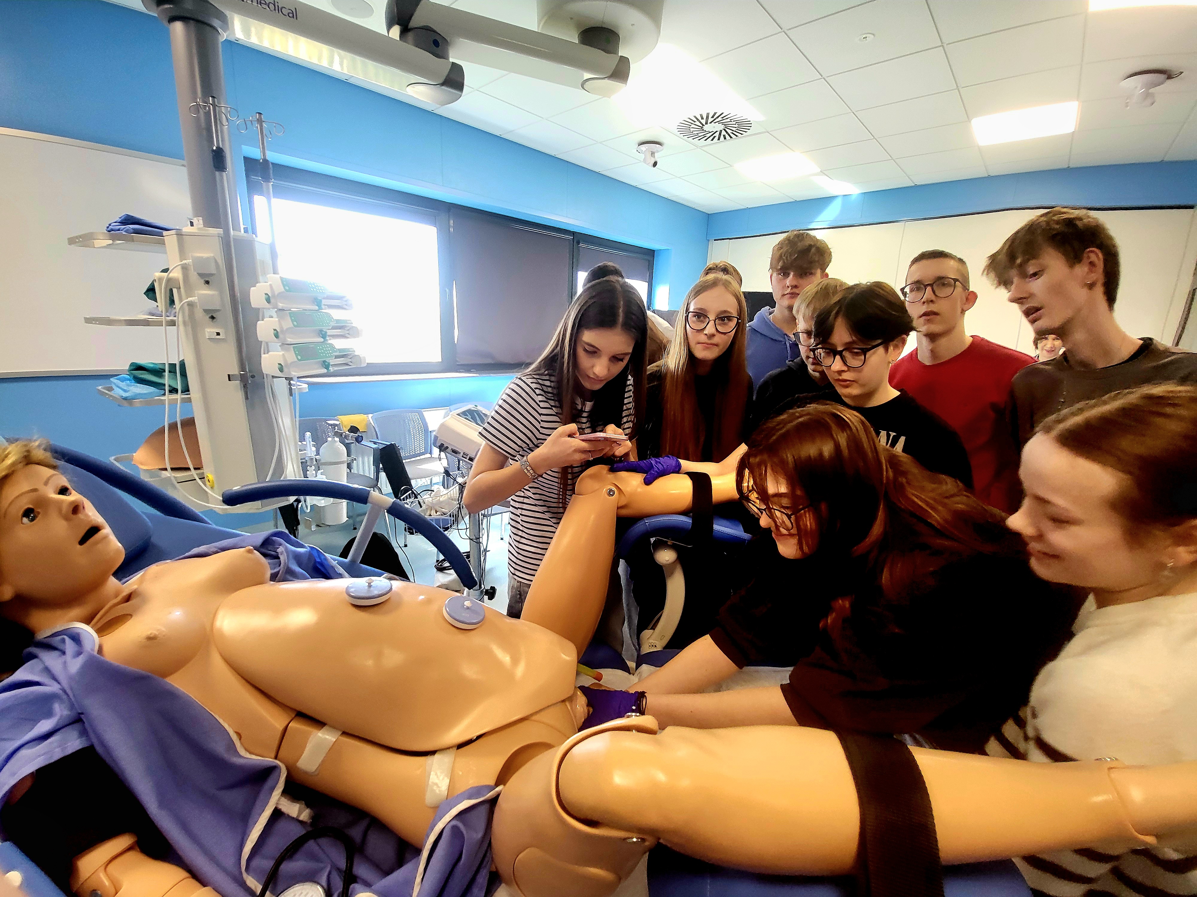 W programie były m.in. pokaz odbioru porodu, warsztaty pielęgniarskie i zajęcia z pierwszej pomocy. Uczniowie mogli przypomnieć sobie i przetrenować na fantomach zasady udzielenia pierwszej pomocy przy wypadku.