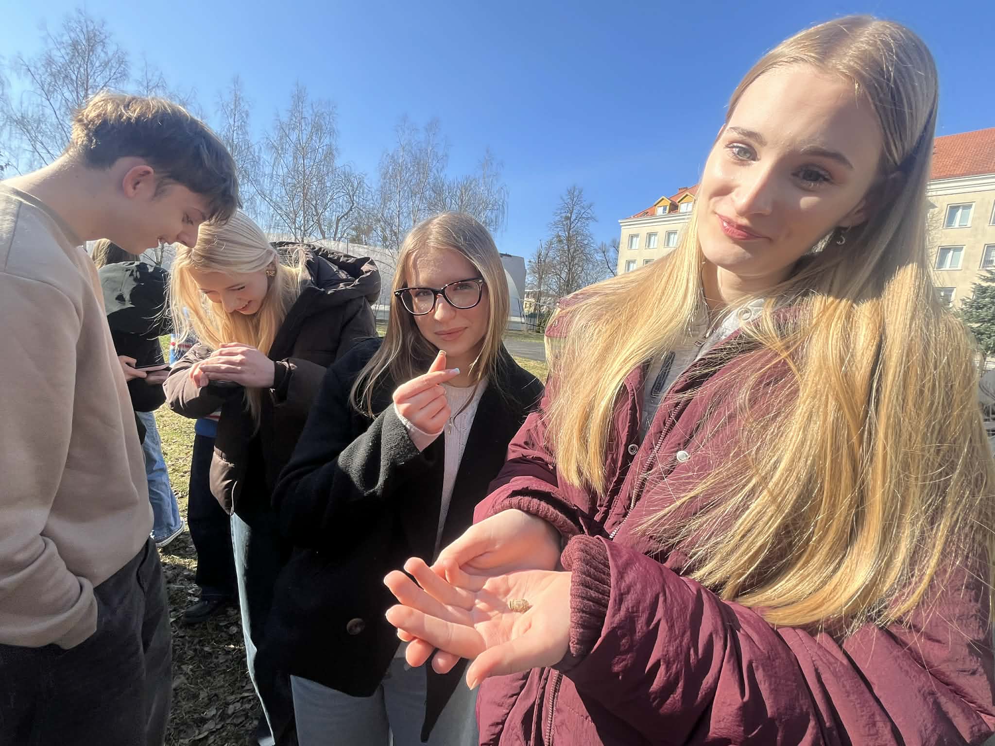 Dzięki nim możliwy jest rozwój wielu roślin, także tych, które stanowią podstawę naszej diety. Szczególną uwagę poświęcono pszczołom murarkom, które – choć nie produkują miodu – wyróżniają się wyjątkową skutecznością zapylania. To sprawia, że są niezwykle cenne dla ekosystemu i rolnictwa. Uczniowie mieli również okazję zobaczyć kokony tych pszczół, a nawet przez chwilę potrzymać je na dłoni.