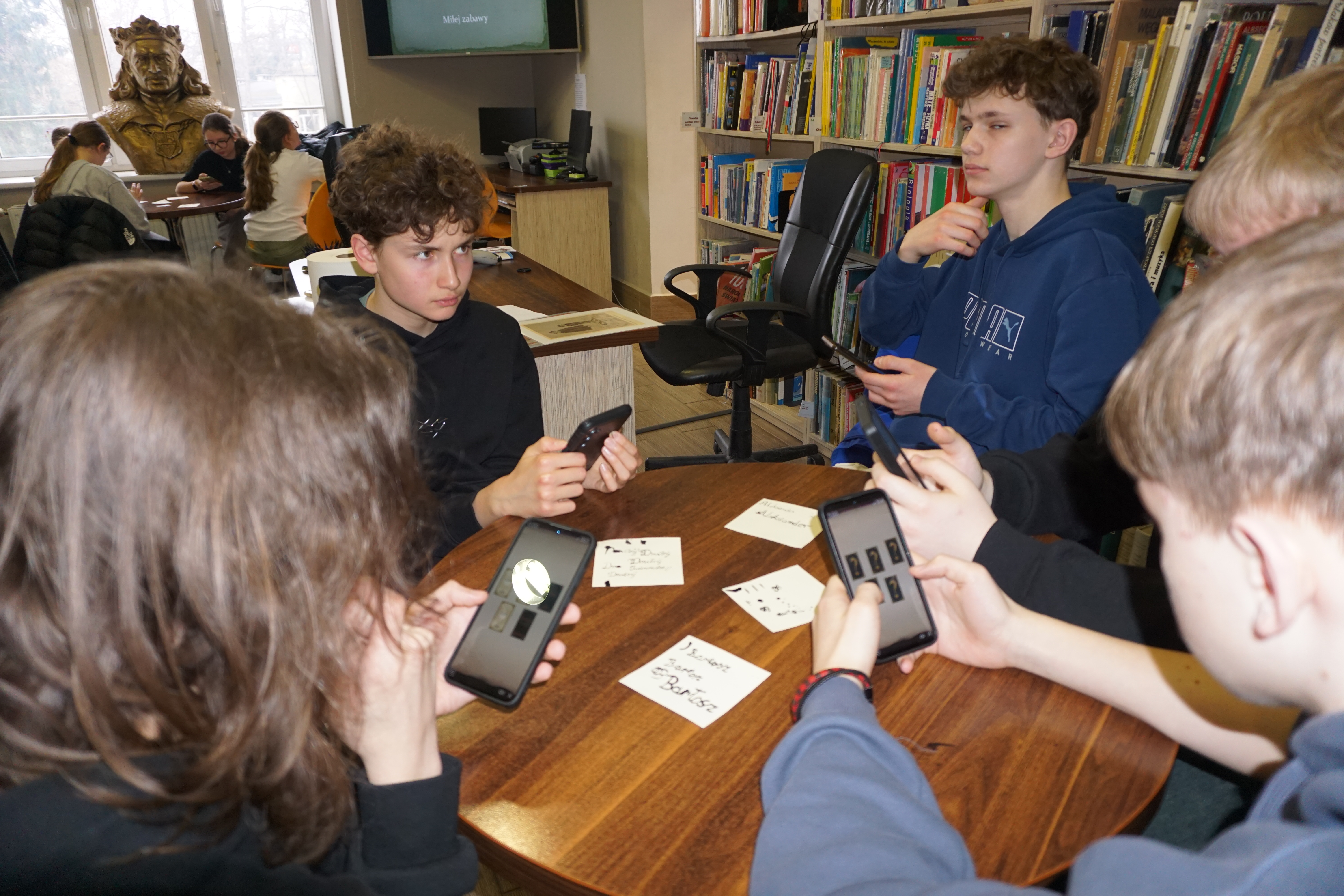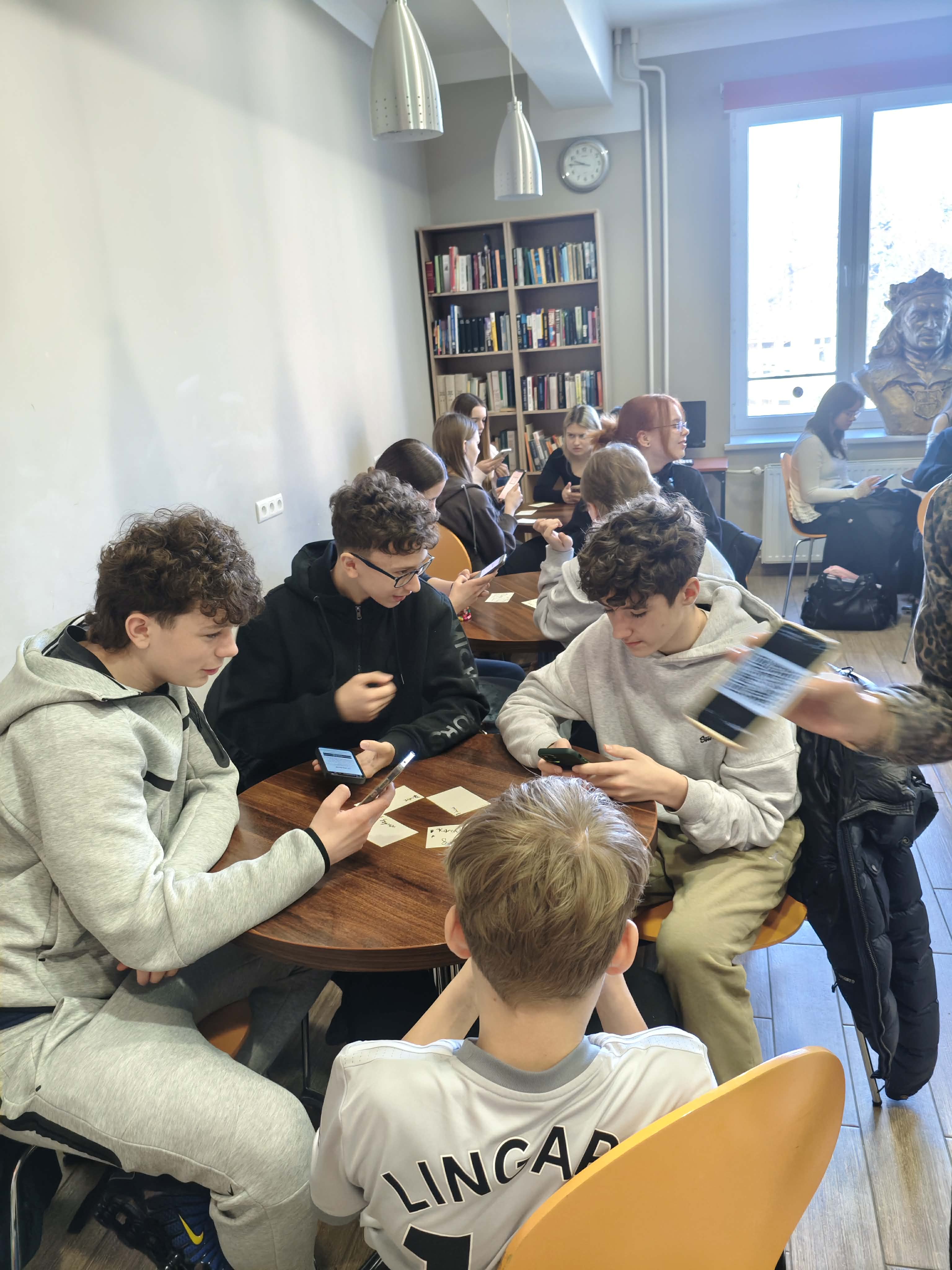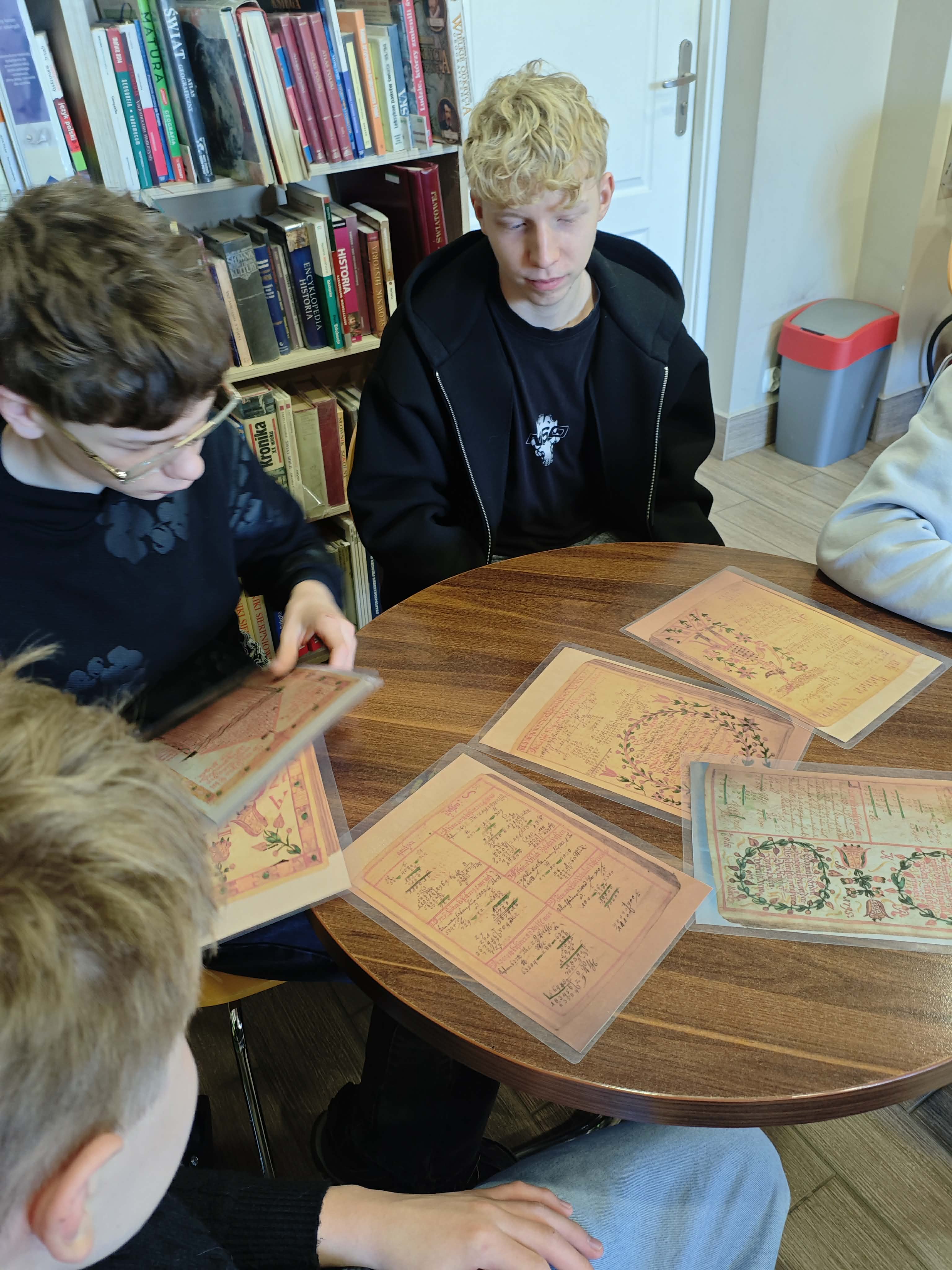 Na zajęciach uczniowie klas ósmych zapoznali się z informacjami o tym, jak wyglądał dzień ucznia sprzed 400 lat, czego się uczył, jakie zakazy i nakazy zawierał regulamin szkoły oraz czy dawni gimnazjaliści mieli wakacje. Niewątpliwym zaskoczeniem dla naszych gości były zaprezentowane fotografie dawnych zeszytów gimnazjalnych – zeszytów sprzed 250 lat. Największym rarytasem dla oka było piękne, estetyczne pismo :)