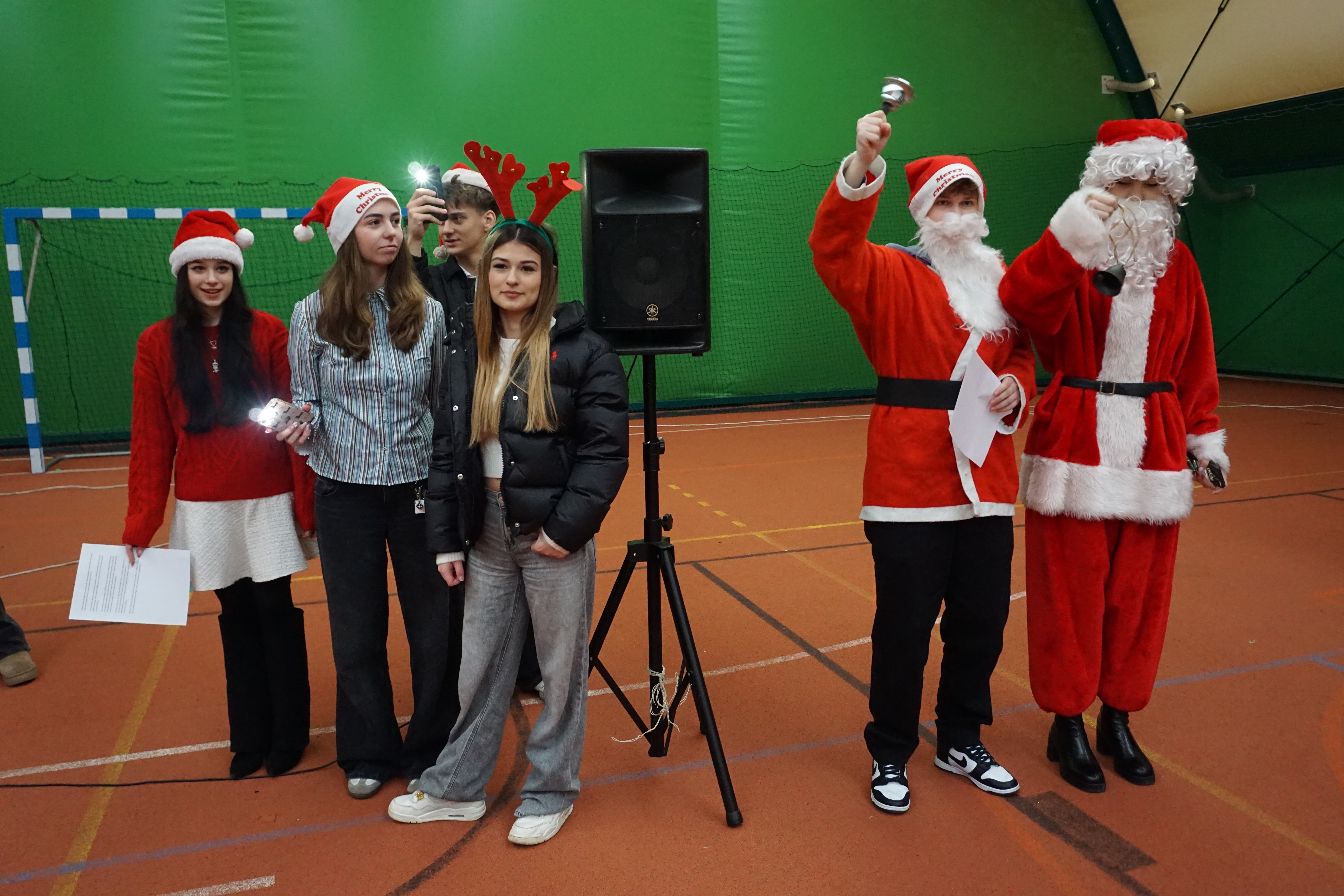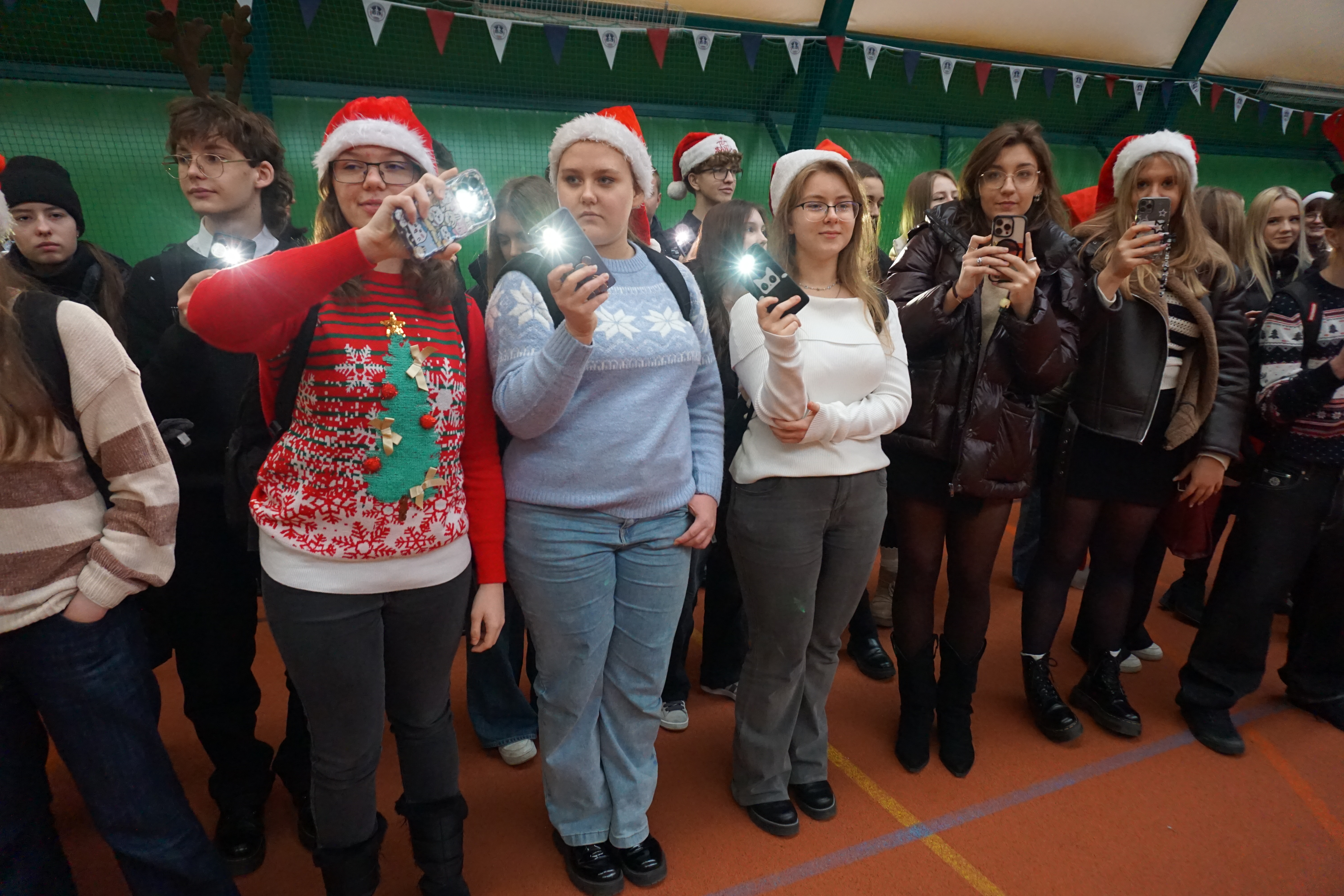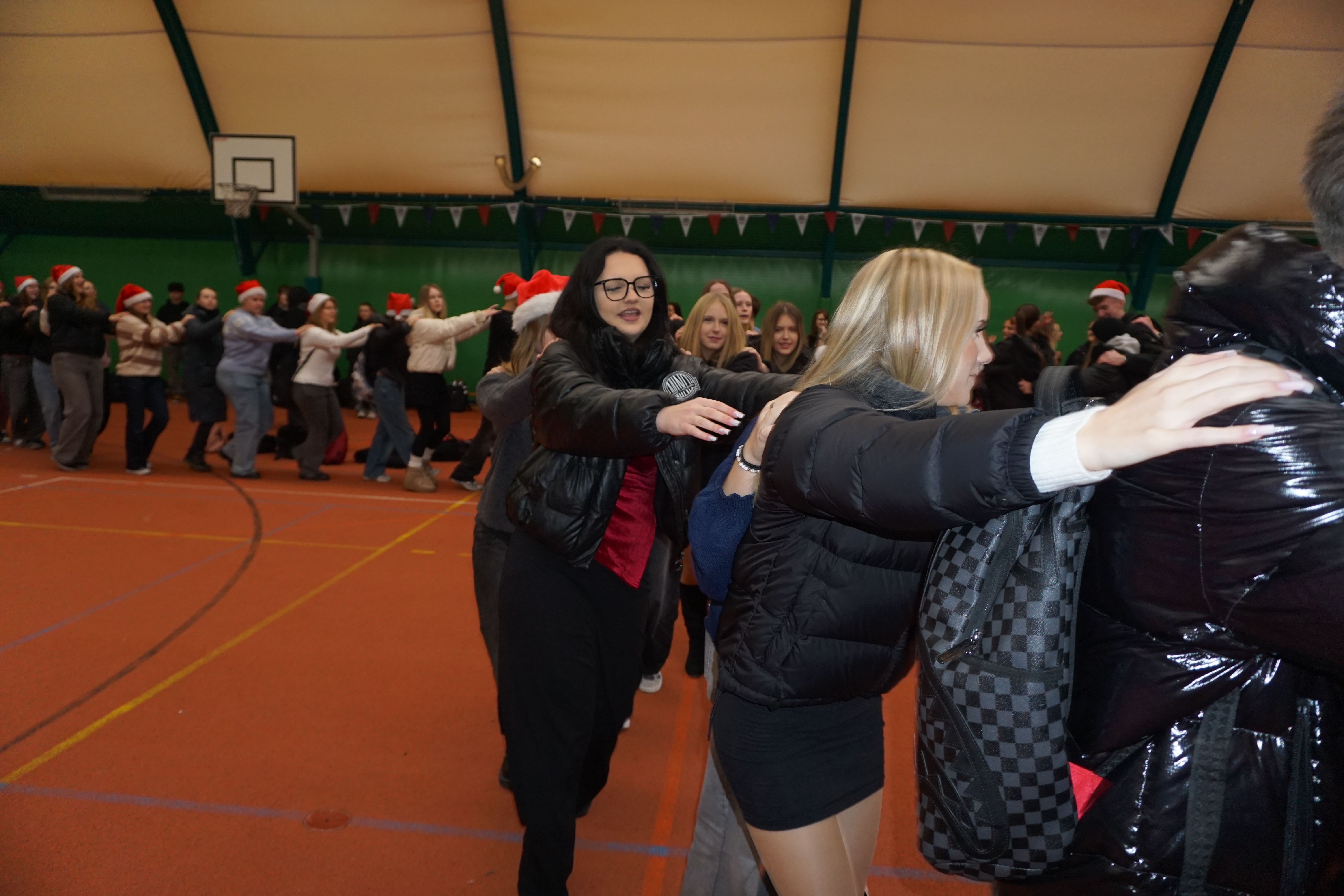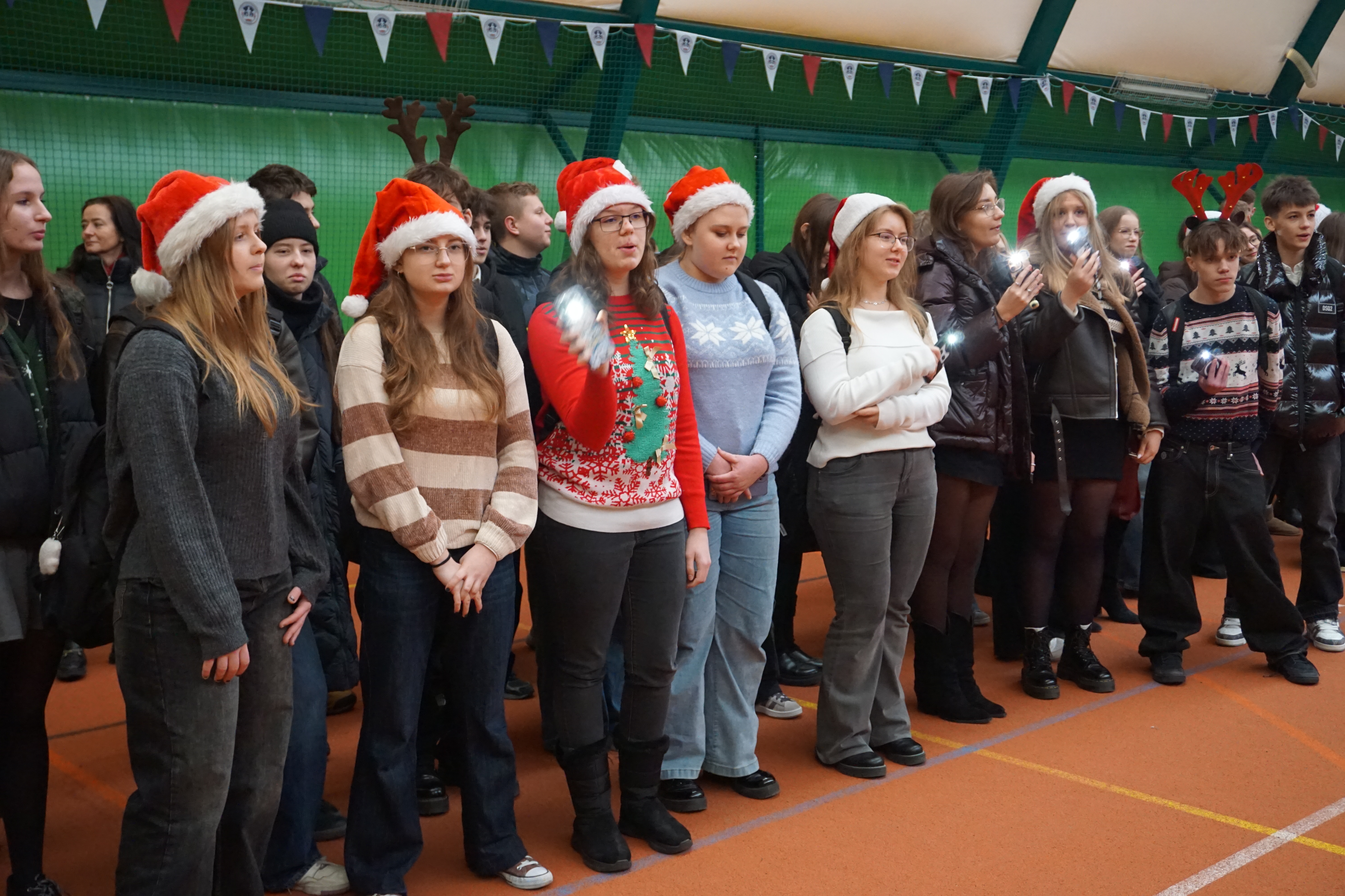 Tuż przed świąteczną przerwą (19 grudnia 2025r) zebaraliśmy się w dużej sali gimnstycznej. Pani Agnieszka Jurewicz - dyrektor szkoły złożyla świąteczne i noworoczne życzenia rodzinie Jagiellończyka . Samorząd Uczniowski również przyłączył się do życzeń: