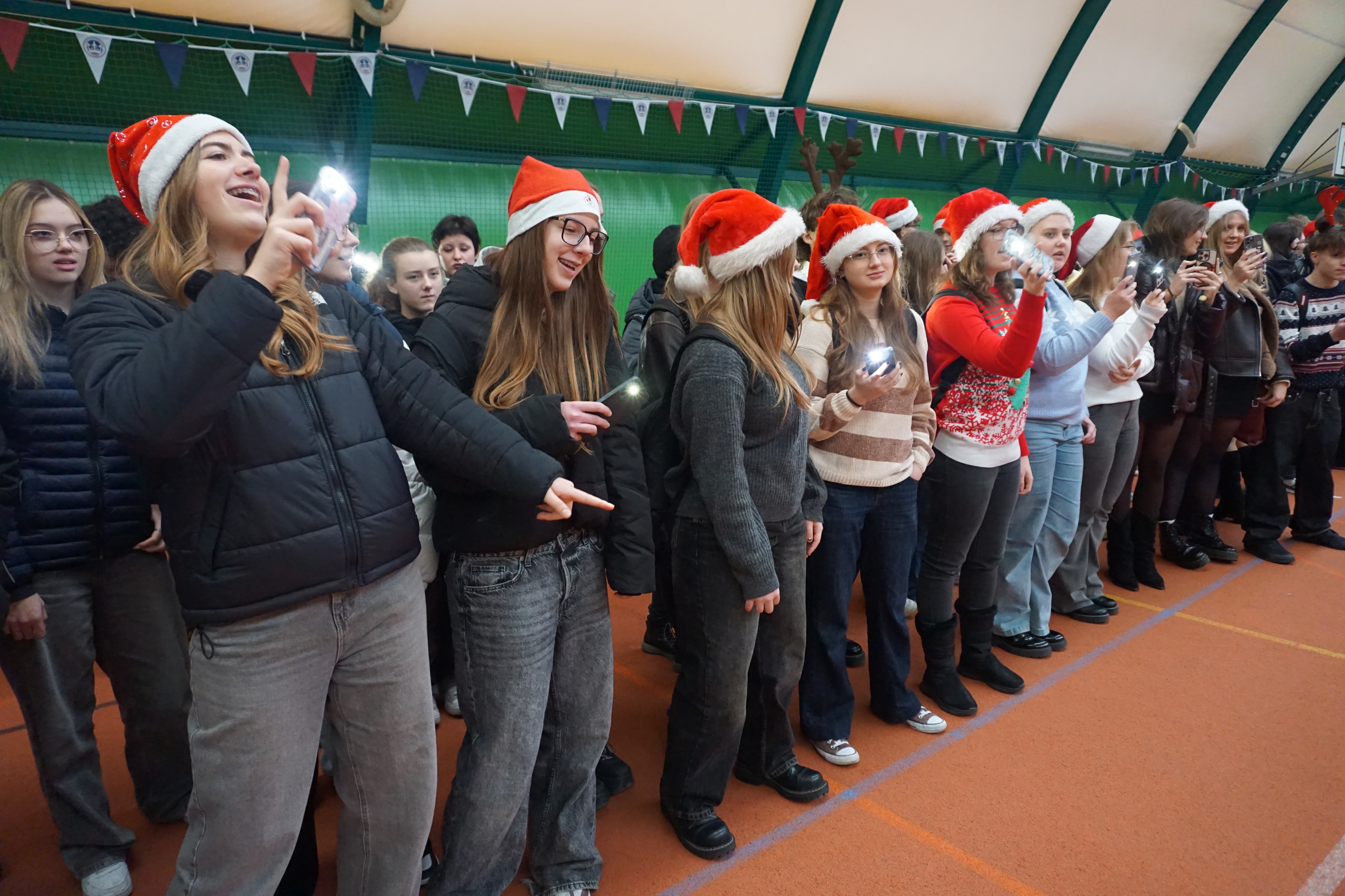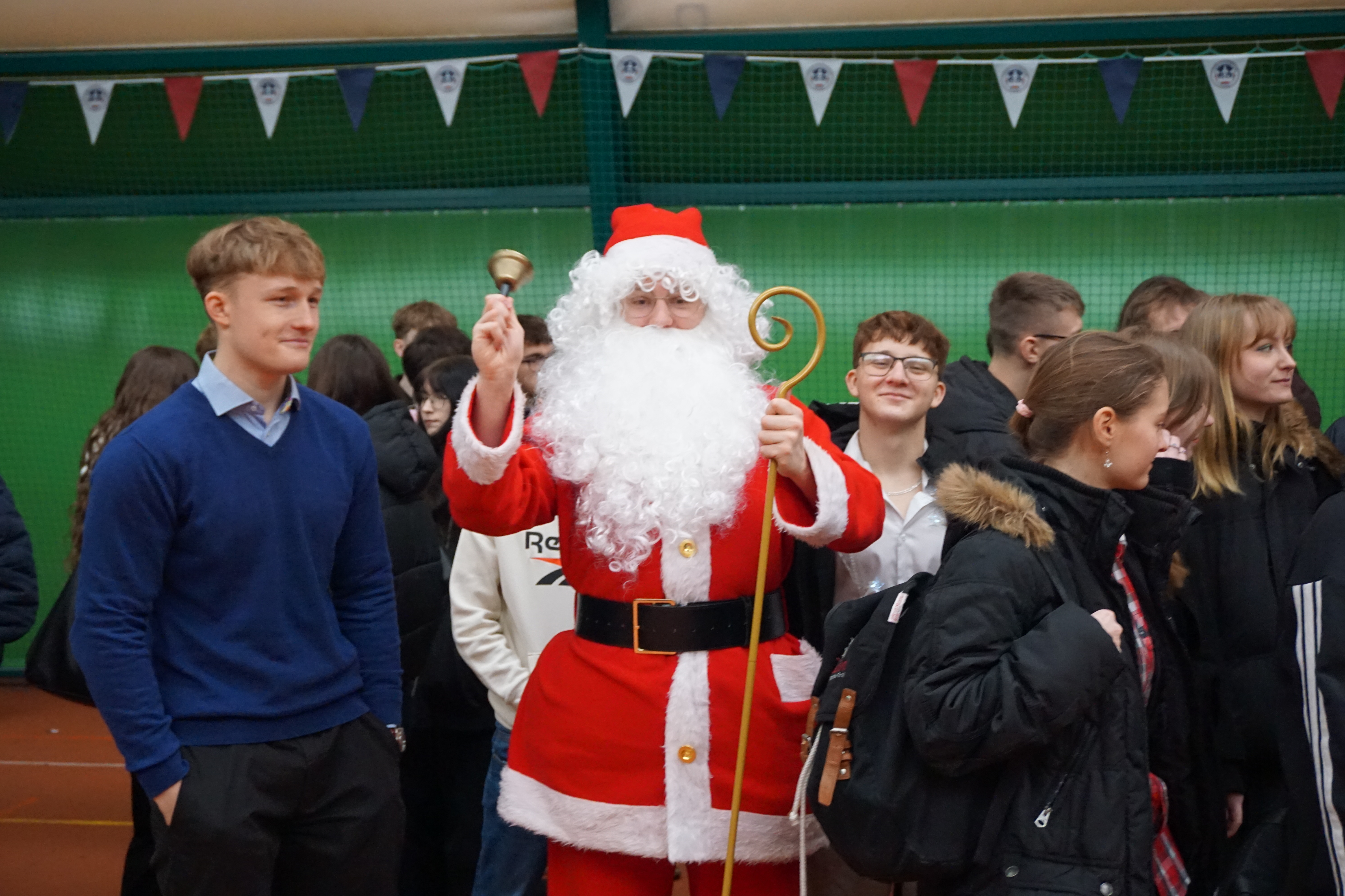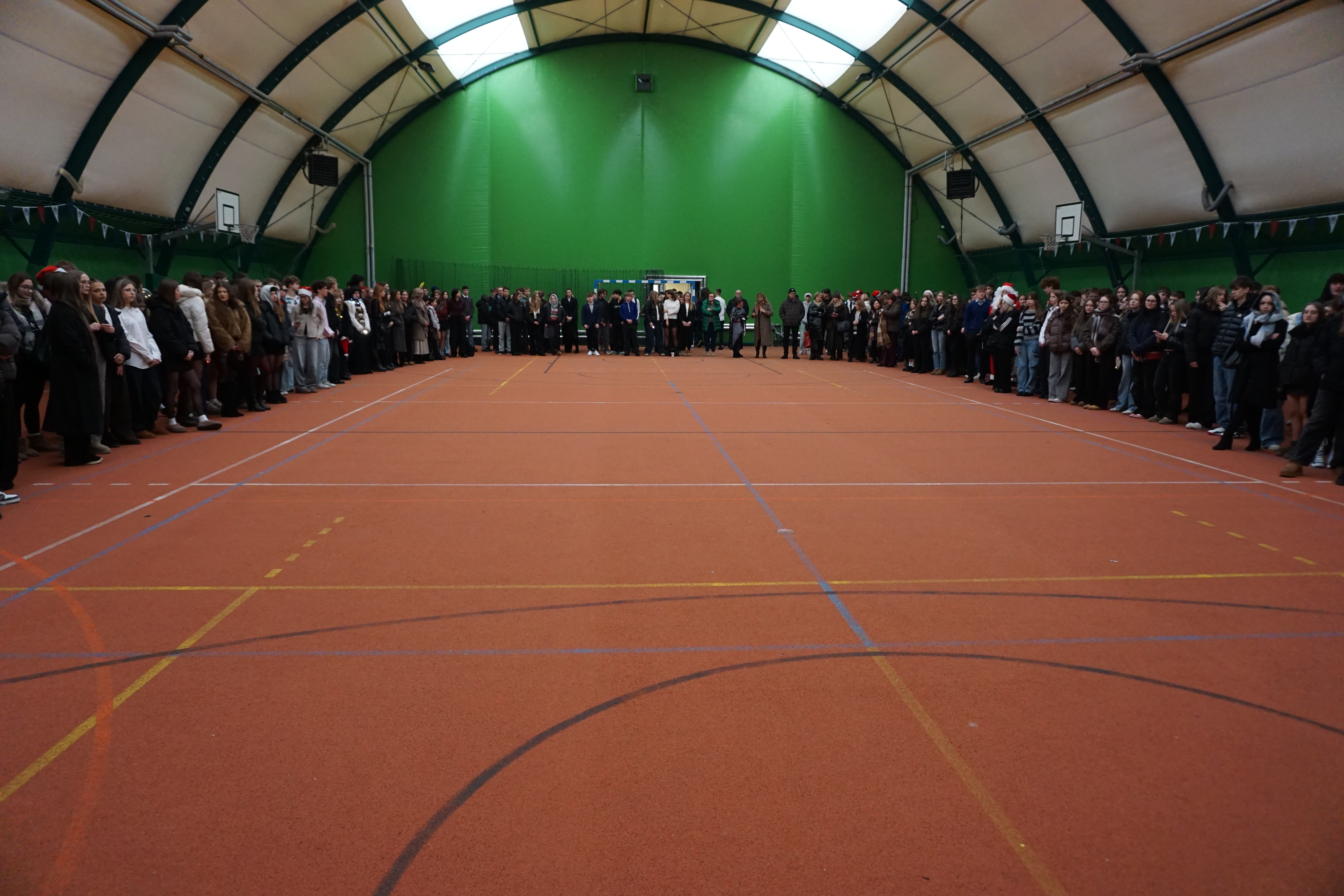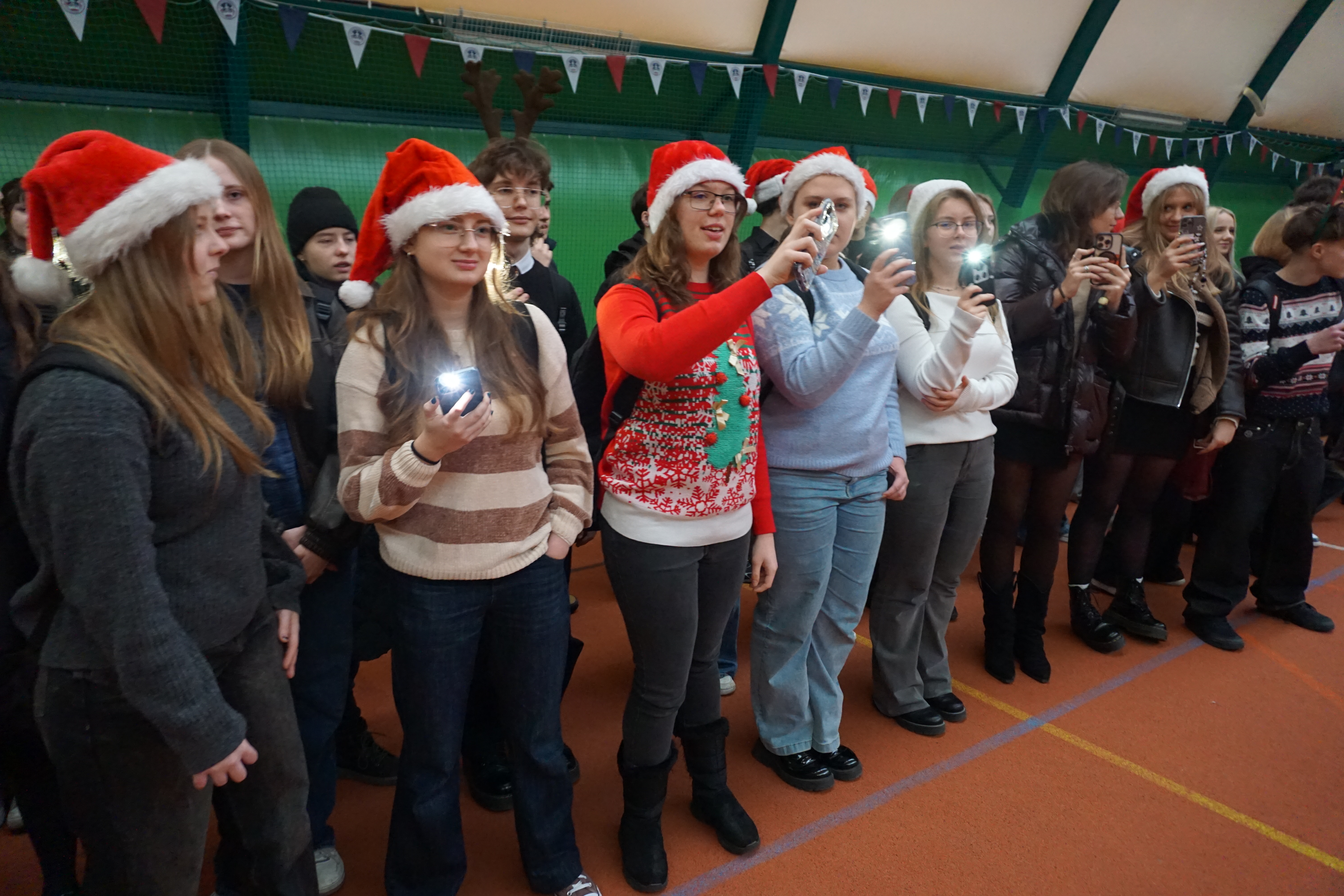 Tuż przed świąteczną przerwą (19 grudnia 2025r) zebaraliśmy się w dużej sali gimnstycznej. Pani Agnieszka Jurewicz - dyrektor szkoły złożyla świąteczne i noworoczne życzenia rodzinie Jagiellończyka . Samorząd Uczniowski również przyłączył się do życzeń:
