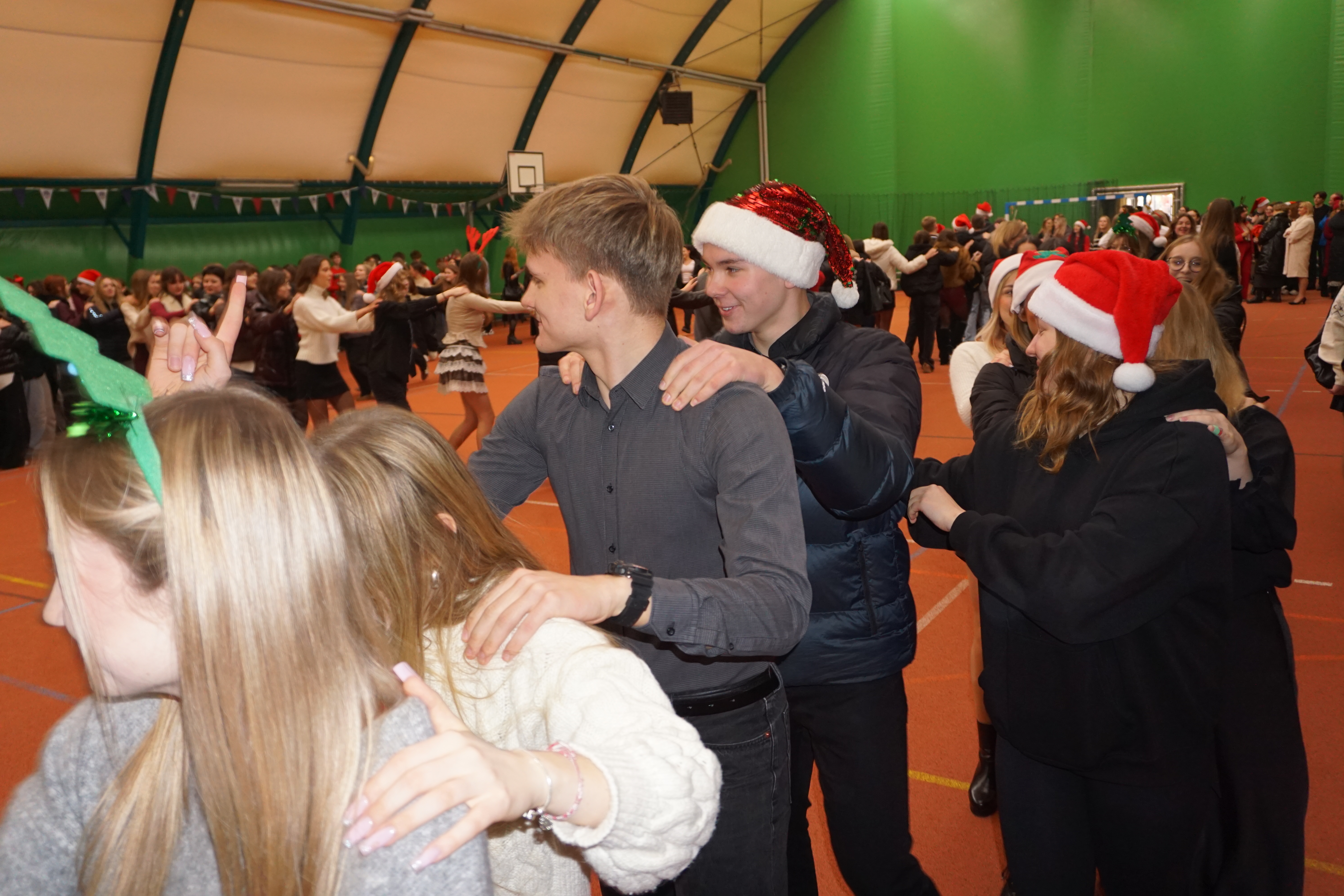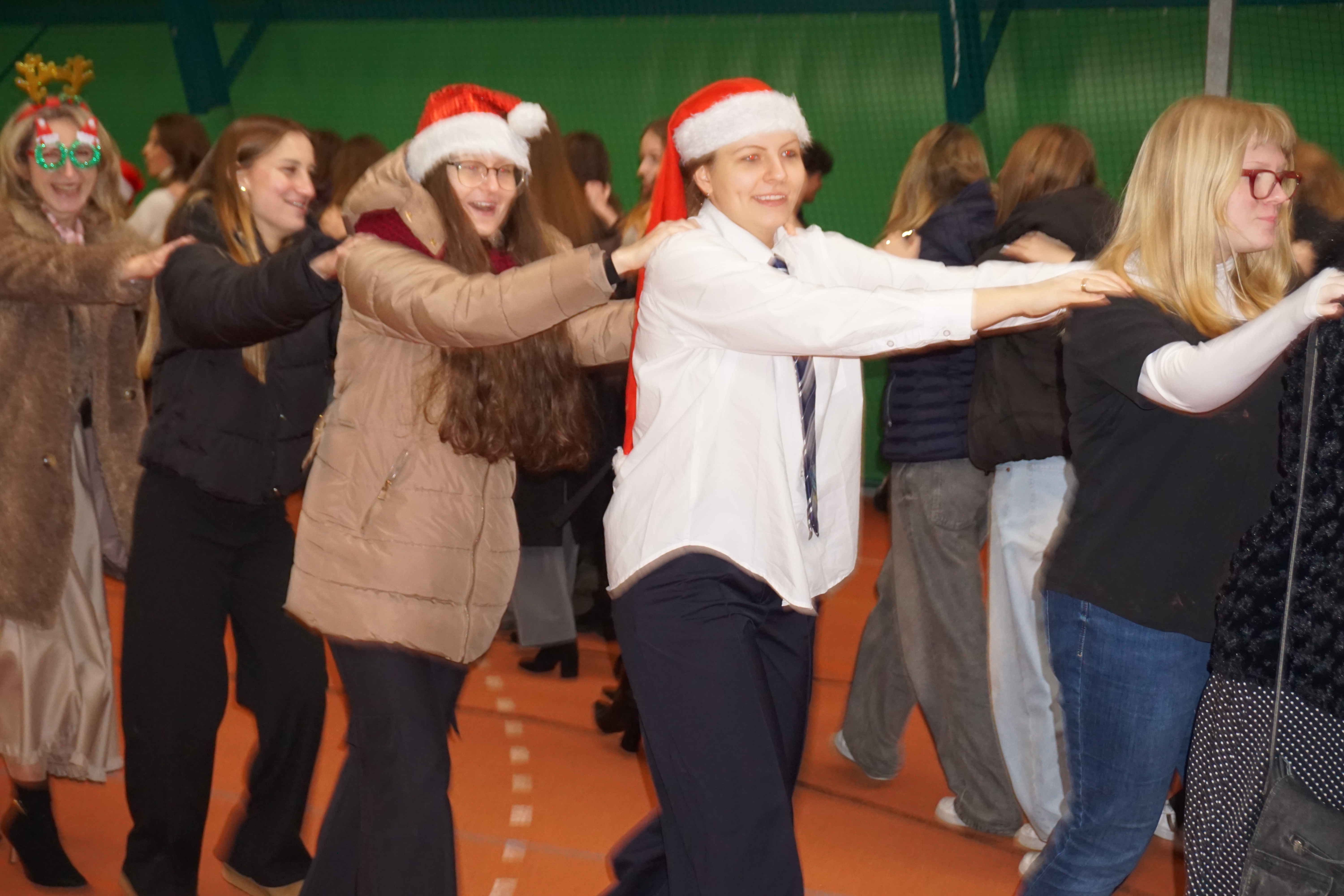 Po życzeniach było wspólne kolędowanie, śpiewanie, dzwonienie dzwoneczkami i taniec! A potem klasowe wigilie.